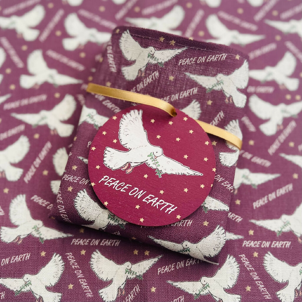 Stunning linen napkins featuring Lottie's hand drawn 'Peace on Earth' design. At Lottie Lane Designs we care about creating lovely things while ensuring our environmental impac...