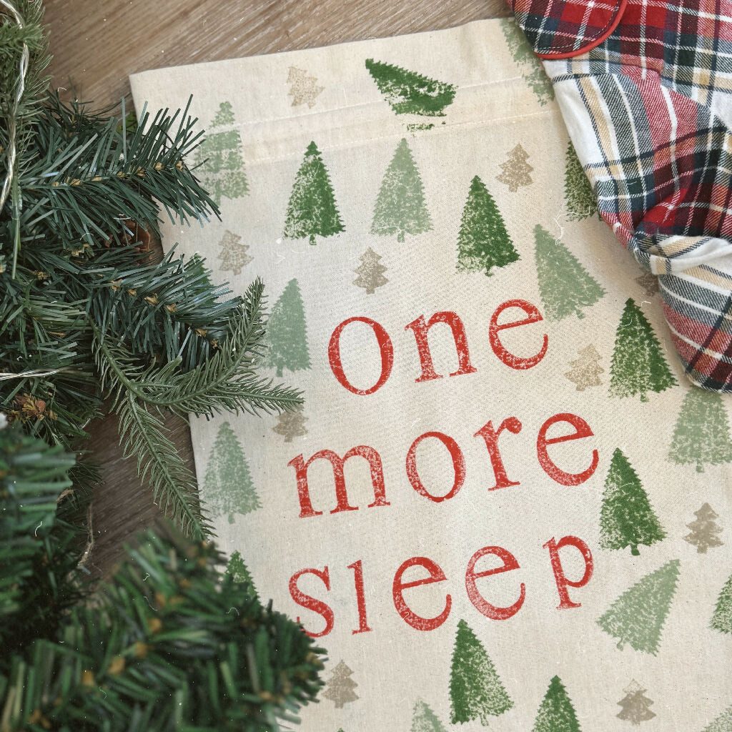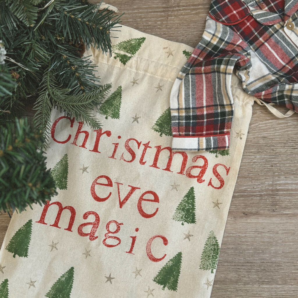 Fill these Christmas Eve drawstring bags with love, tradition, and a touch of handmade magic — treasures to unwrap year after year Hand printed design. Natural cotton fabric.