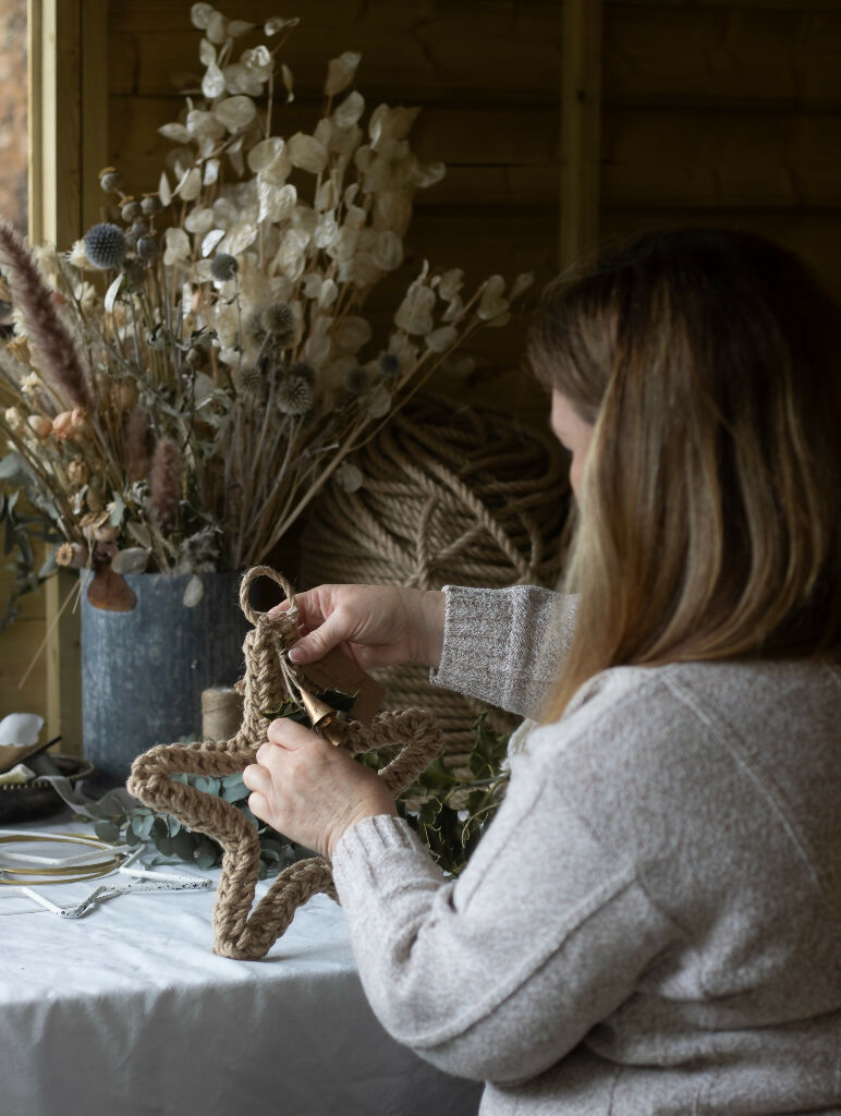 A unique take on a Christmas wreath. This rustic, contemporary Jute star Christmas Wreath can be used both indoors and out and kept up all year and seasonally styled for each season.