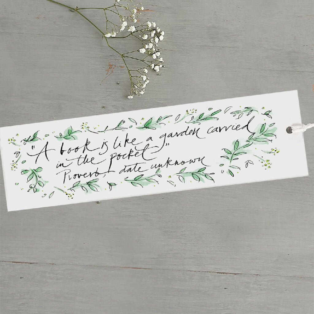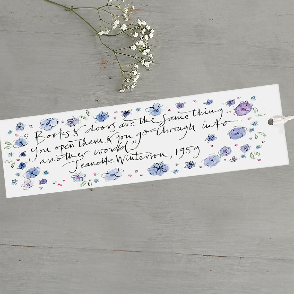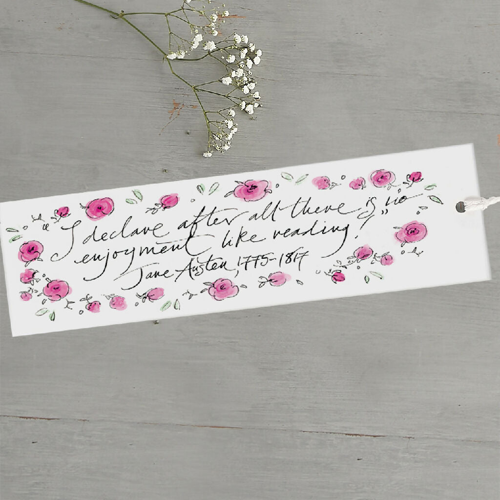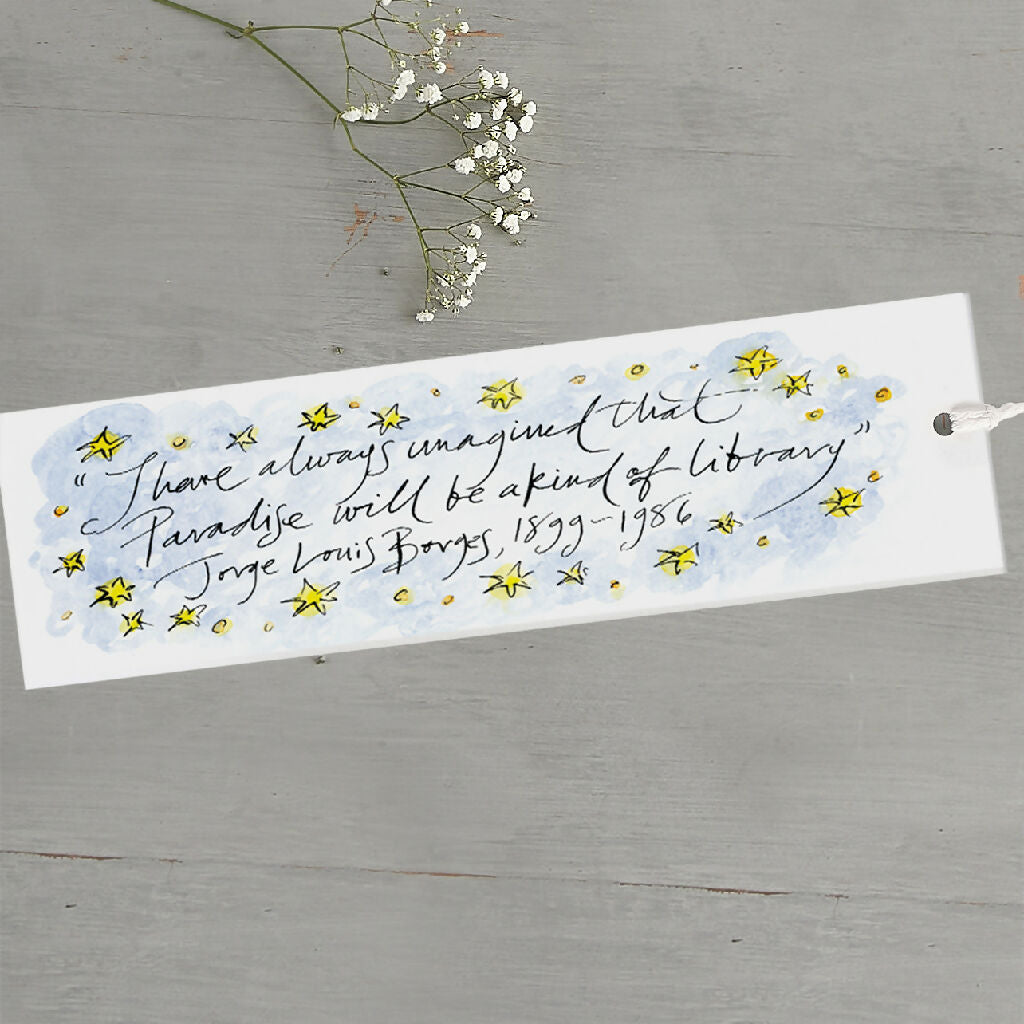 'The Book Lover’s' Bookmarks Set comprise four bookmarks featuring quotes by Jane Austen, Jeanette Winterson, Jorge Louis Borges and a Proverb.