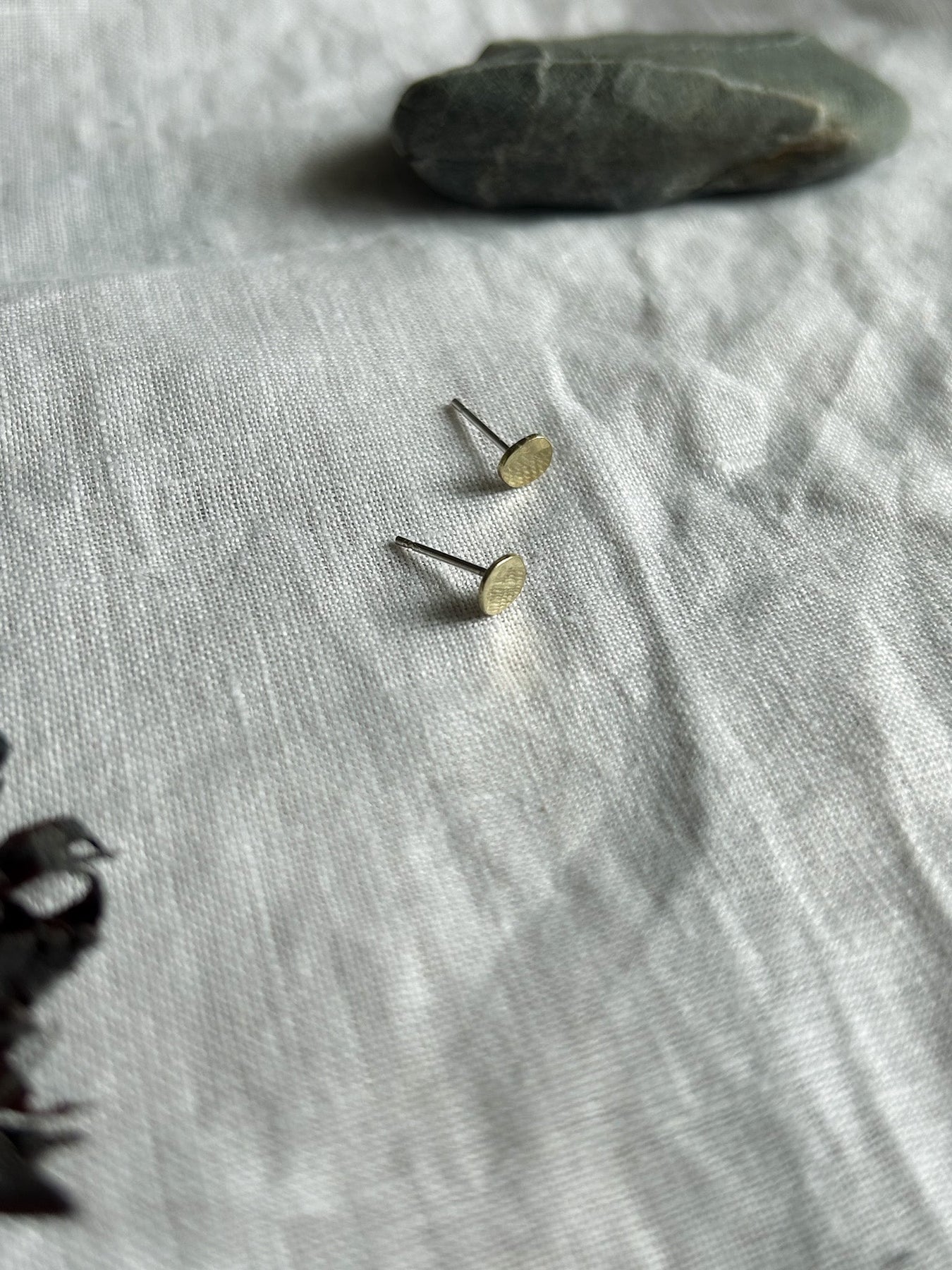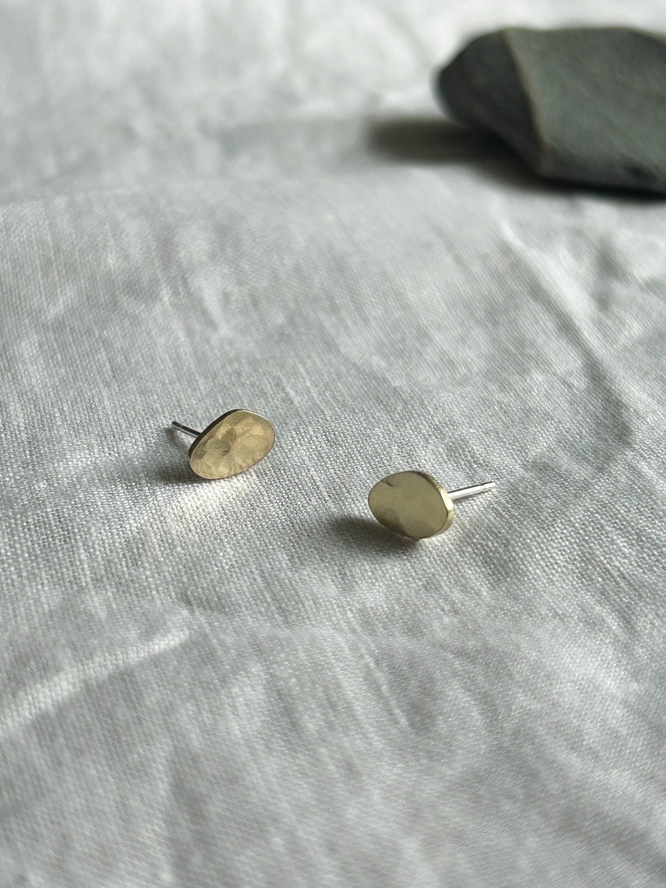 Cut and hammered in Cornwall, these playful pebble inspired shapes can be worn as a minimalist pair or mixed and matched with your other favourite studs.