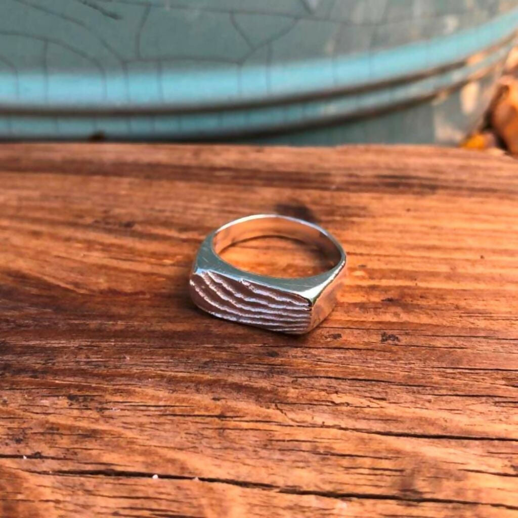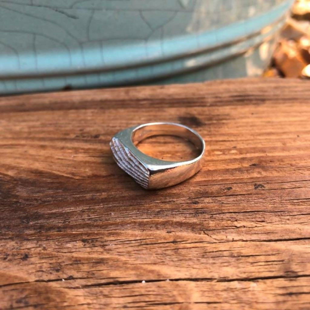 Each ring is first hand-carved in wax, with the cuttlefish texture carefully added once the shape is formed. It is then cast in recycled sterling silver using the ancient lost wax casting method, making every piece truly one of a kind.