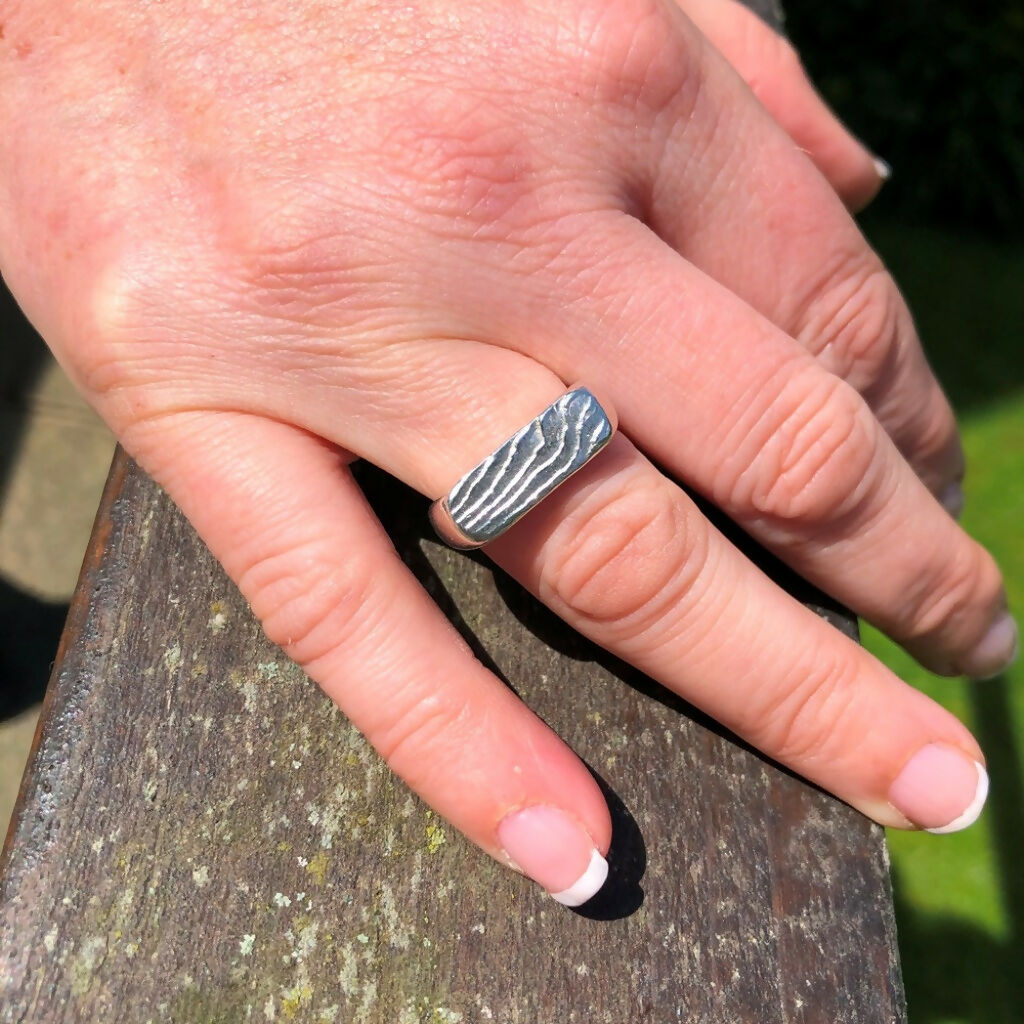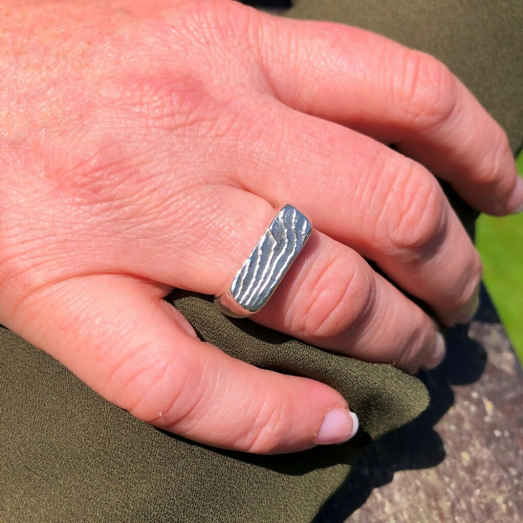 This chunky textured sterling silver cast cuttlefish ring features a unique texture created using a piece of cuttlefish found on my local beach in Cornwall.