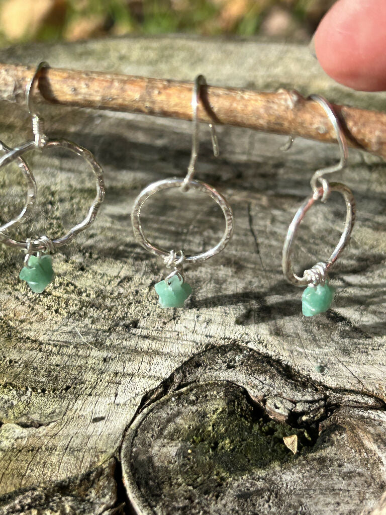 Adorned with green emerald stars. Each star is individually unique but matched as closely as possible due to gemstone variants.