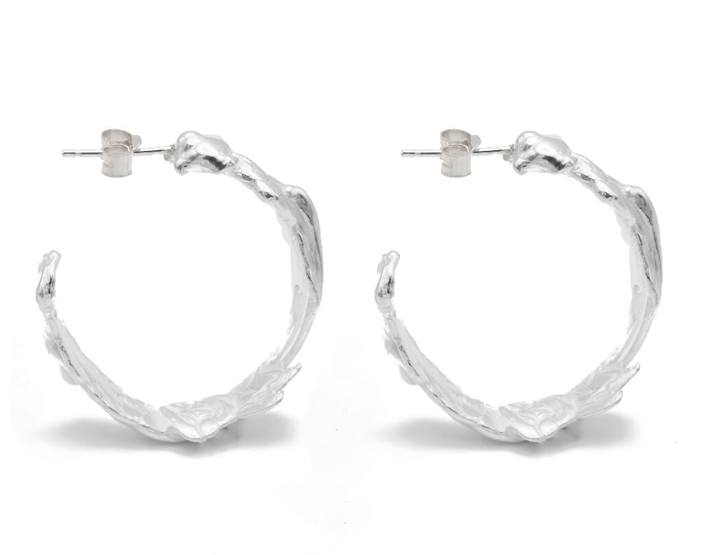 These are statement earrings designed to look like molten metal. Handmade by casting molten liquid wax into shape, these are large enough to make an impact but not too heavy for your ears. The light dances off the surface in the most wonderful way. Available in recycled silver, or plated with a thick layer of gold.