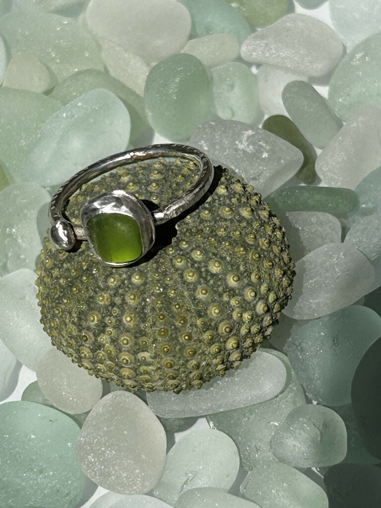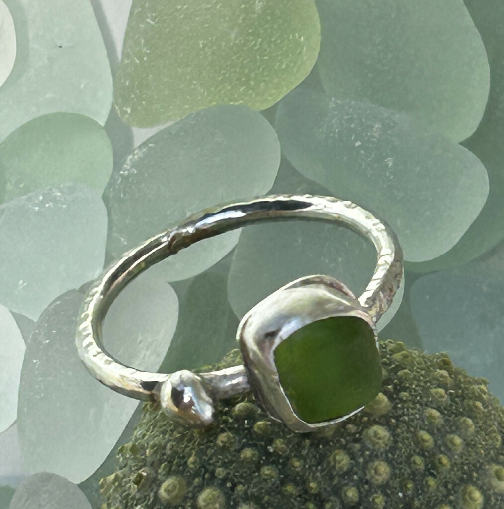 A piece of Dorset Seaglass set into a silver bezel setting on a sea shimmer water textured ring. The silver I have used is 100% recycled silver sourced from Hatton Garden. Made ...