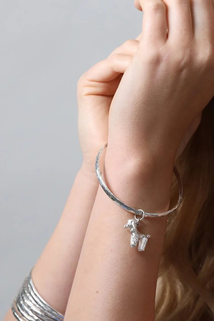 A beautiful choice of bangles with your chosen animal added, if you would like more than one Charm please contact me and I will make something specially for you !
