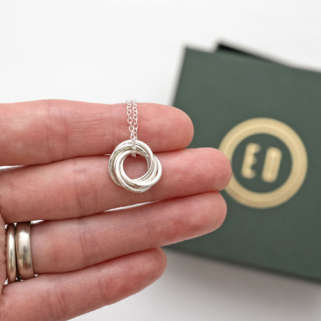 It’s also a popular choice as a family necklace, best friend necklace, or sister necklace, with each interlinked ring symbolising a friendship or bond.