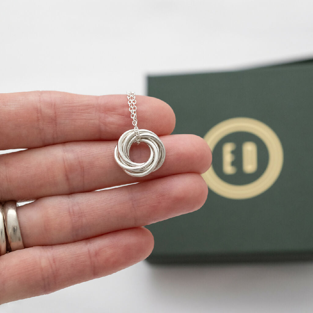 It’s also a popular choice as a family necklace, best friend necklace, or sister necklace, with each interlinked ring symbolising a friendship or bond.