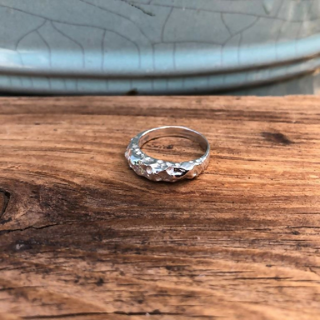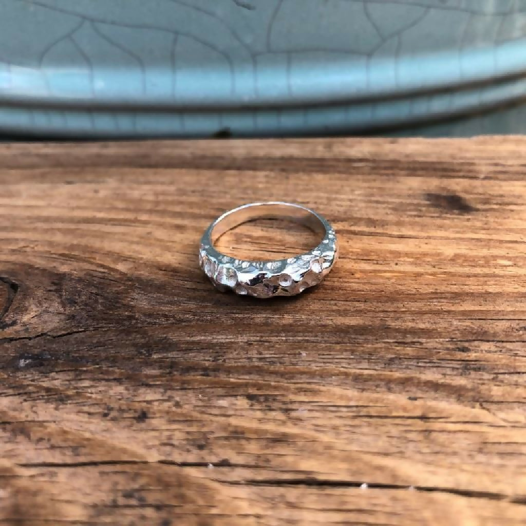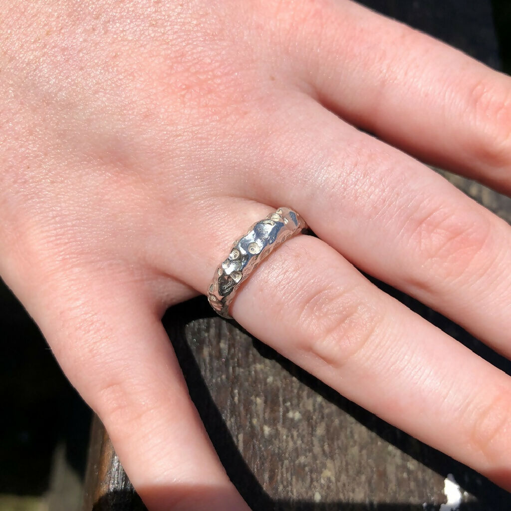 This Organic Textured Sterling Silver Cast Boulder Ring was inspired by the big imposing rocks and boulders on the beaches here in West Cornwall. The ring has the natural, rugged texture of boulders carved into it, giving it a raw look & feel that is also very tactile.