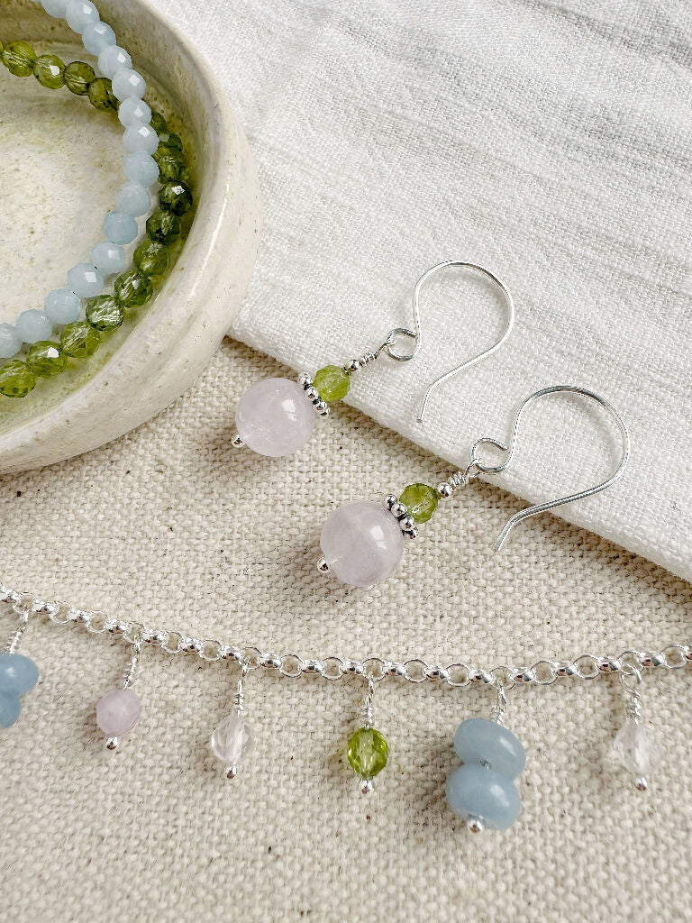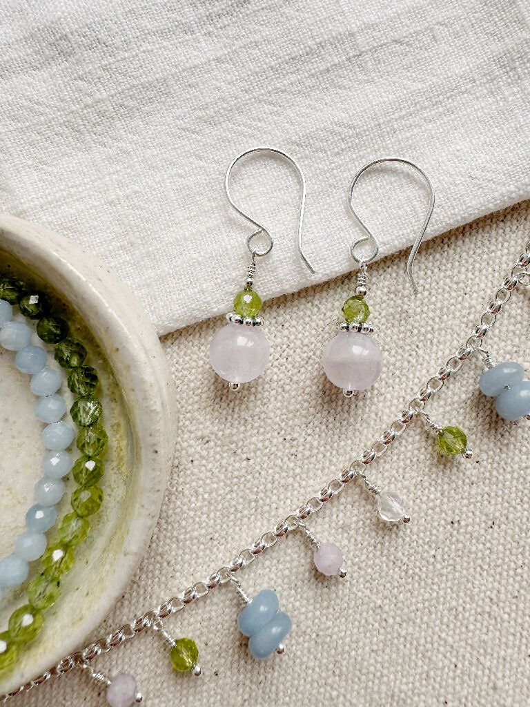 Petite Chic Rose Quartz and Peridot Earrings