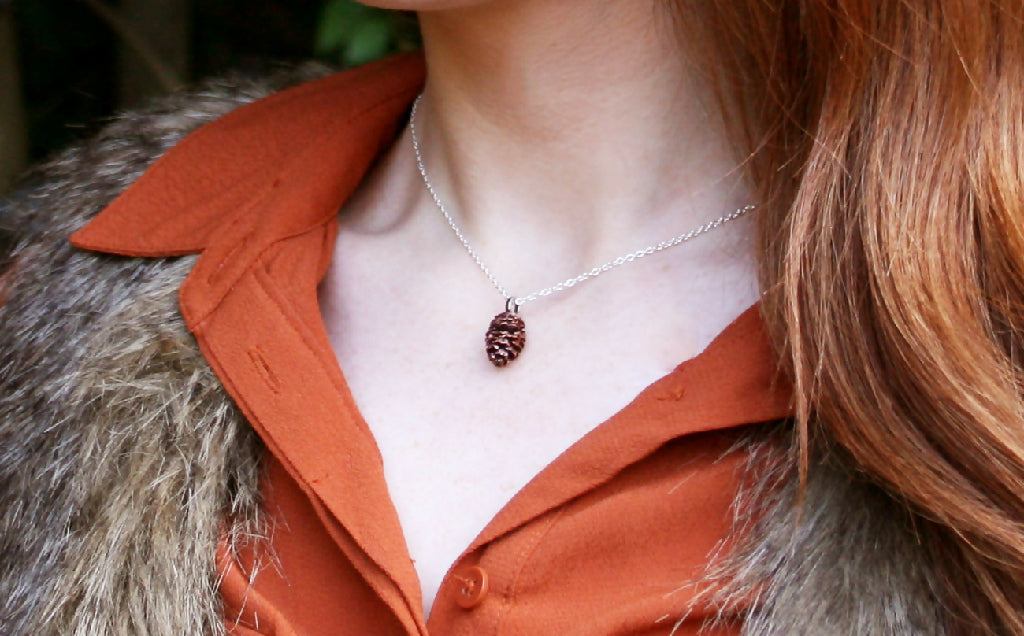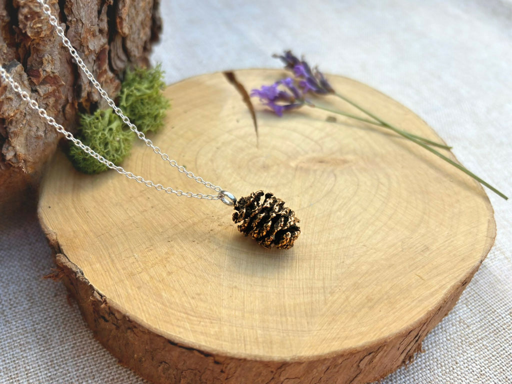 Using the ancient art of Lost Wax Casting, the natural pinecone is transformed into solid metal, preserving every intricate detail. The pinecone is then oxidised to bring out the texture of its leaves and lightly polished to highlight its natural beauty.