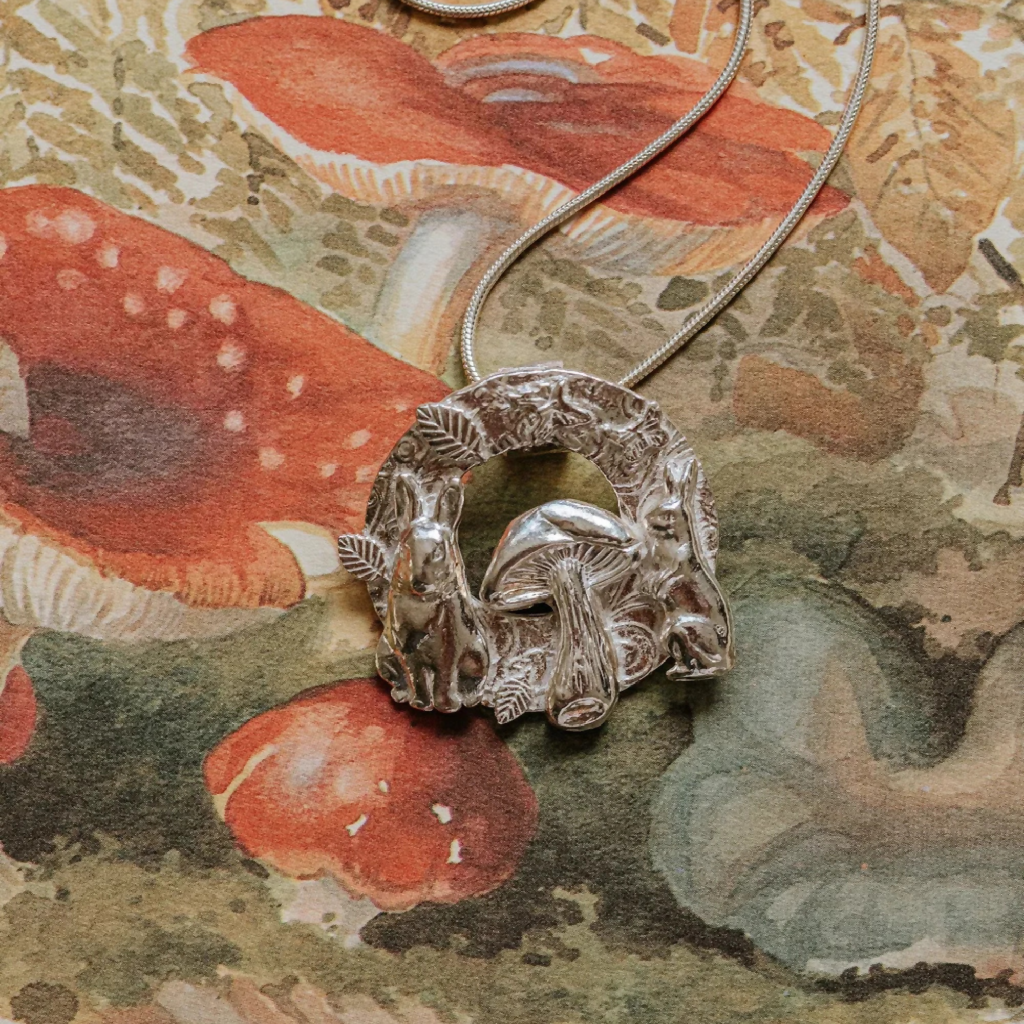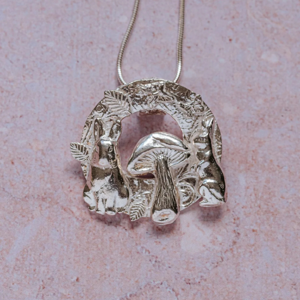 Each pendant is shaped by hand in recycled fine silver, giving it an organic, soulful feel that only true artisan work can create. The rabbits speak to intuition, gentleness, and new beginnings, while the toadstool carries the symbolism of transformation, mystery, and quiet magic. Together, they create a little woodland talisman to wear close to your heart.