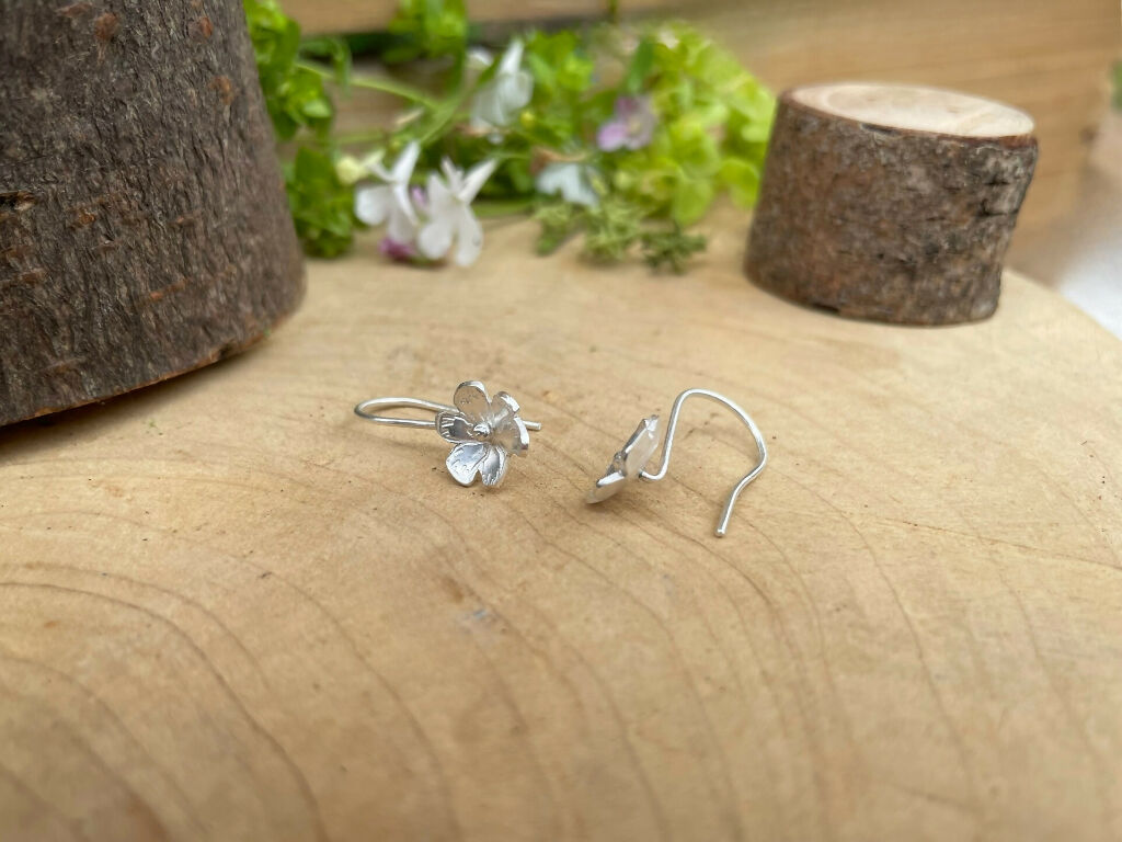Silver Blossom Drop Earrings