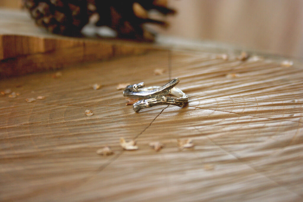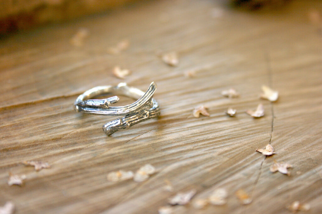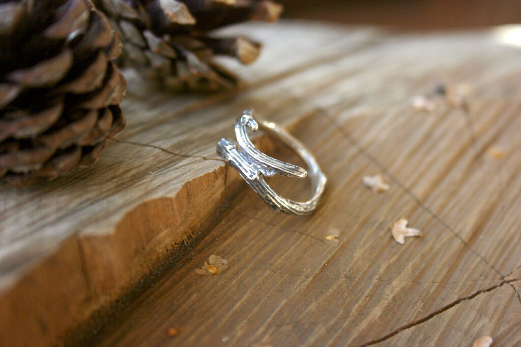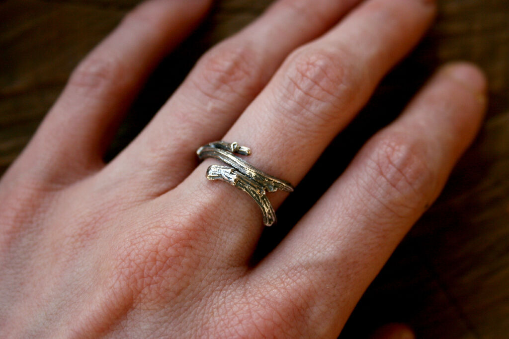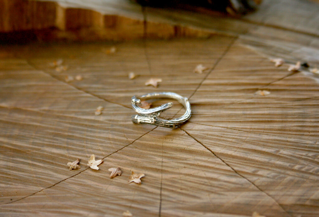 The Silver Branch Ring curls gently around the finger as if it has naturally grown there. Using the ancient technique of Lost Wax Casting, each twig is transformed into solid silver, preserving its natural texture and detail. Because every twig is different, each ring is entirely unique and one of a kind.