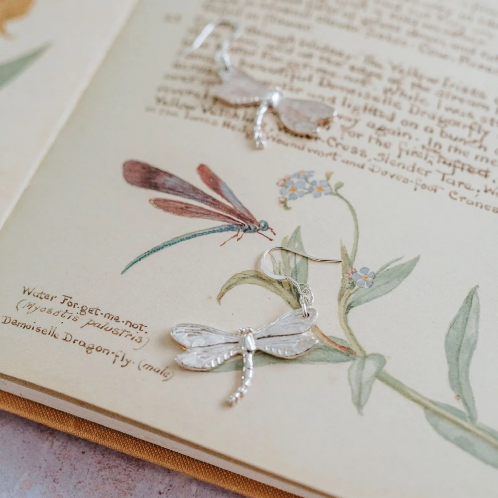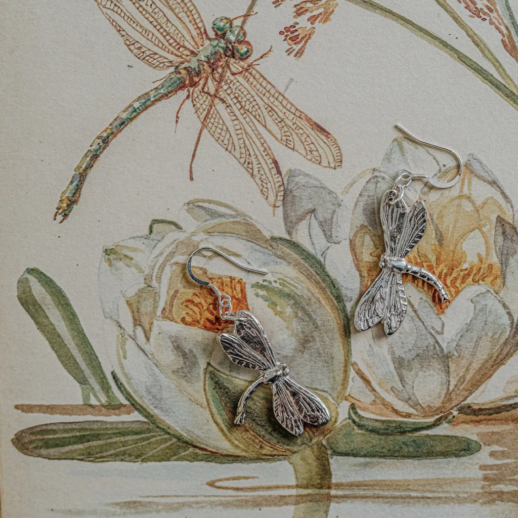 The dragonfly has always been a symbol of transformation, a fleeting creature of rivers and meadows, reminding us to embrace change and to live lightly in the moment. These handcrafted silver Dragonfly Earrings capture that timeless spirit, their wings etched with fine detail as though caught mid-flight.