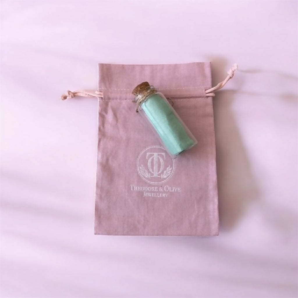 Your beautiful studs will arrive in a Theodore and Olive glass bottle and a dusky pink logo dust bag.