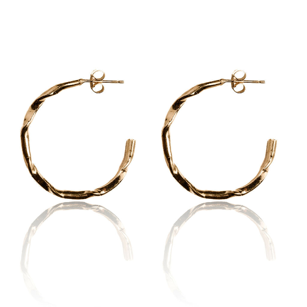 The ultimate everyday hoop earring, designed with a unique twist. The inspiration for these earrings came from the captivating way that silver 'crumples' when subjected to heat at a specific angle, creating an intriguing texture. Each piece is uniquely twisted, allowing light to dance and shimmer off the various angles of the metal. These earrings are available in two stunning finishes: classic silver or luxurious gold vermeil.