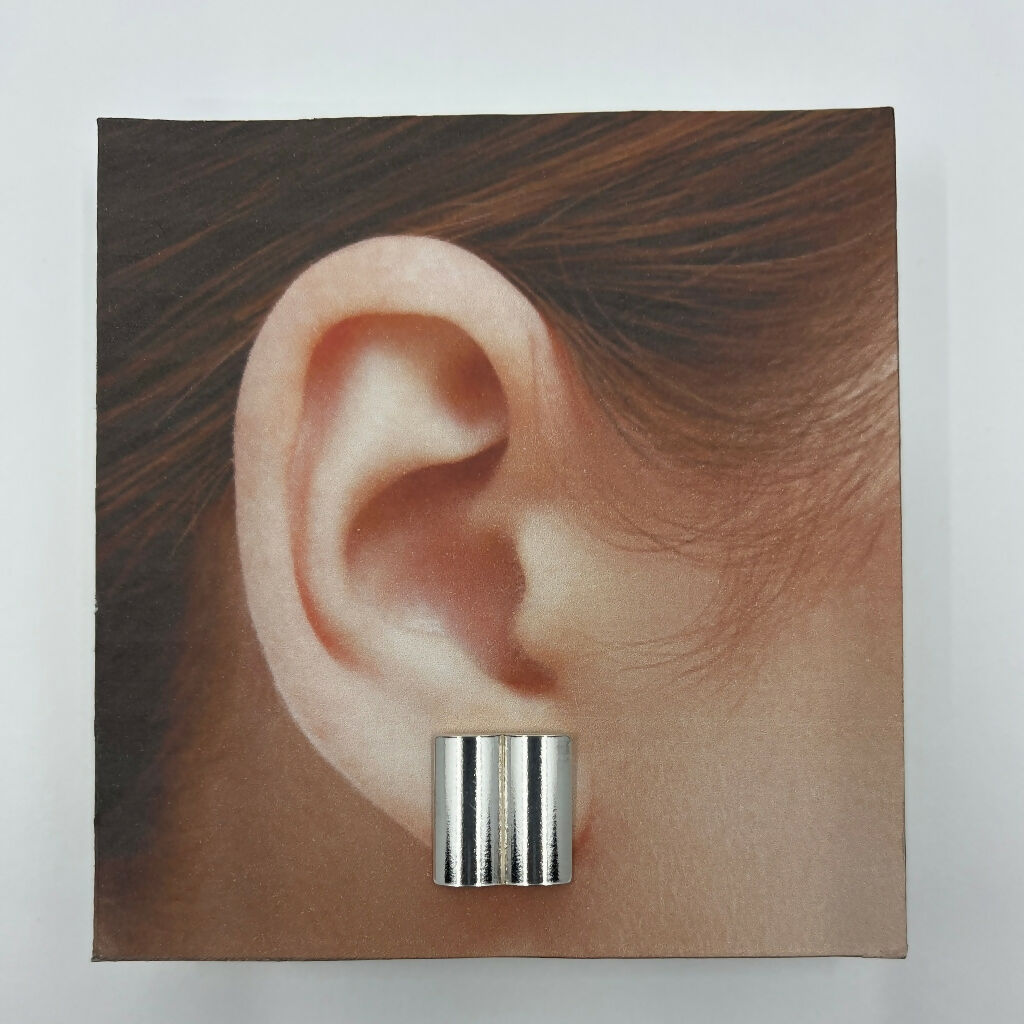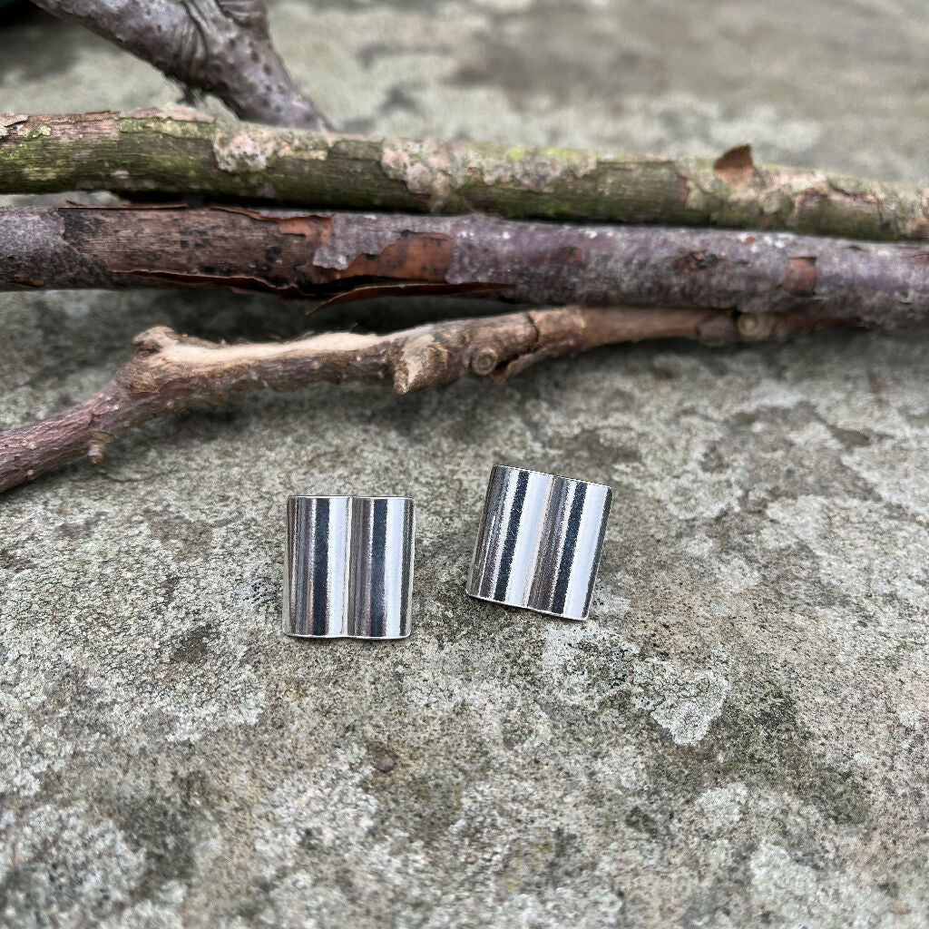 I hand-make these earrings using recycled 925 sterling silver D-shaped wire, 8mm wide. Working from my workshop in West Yorkshire, I craft them from scratch with care. The geometric design