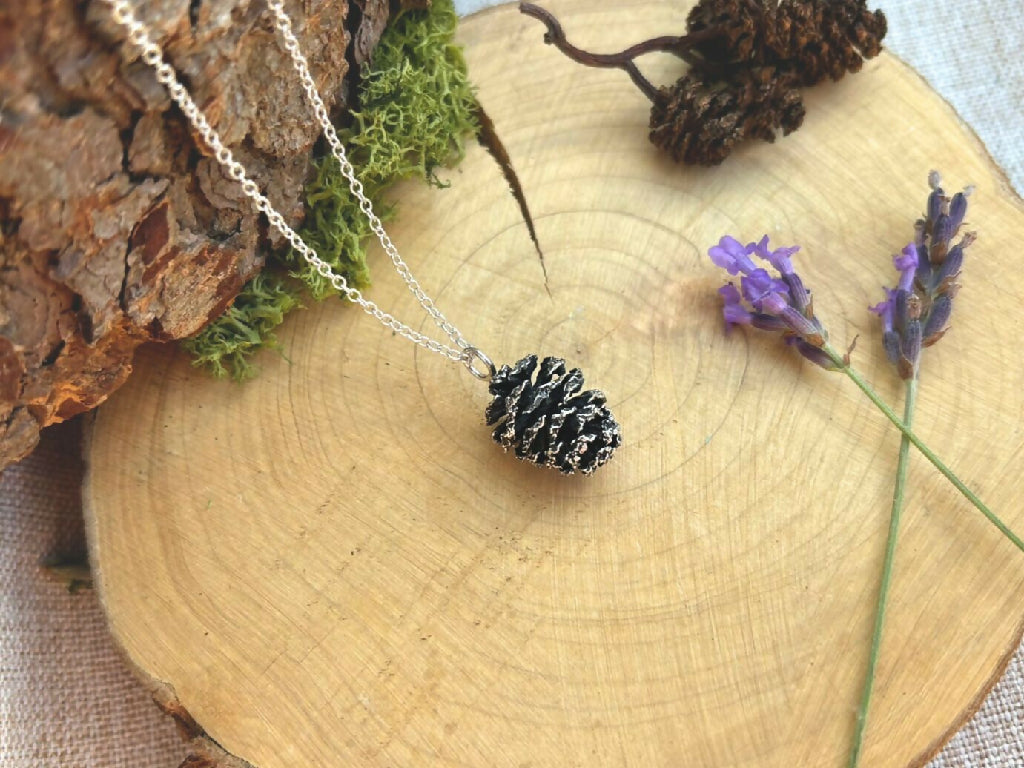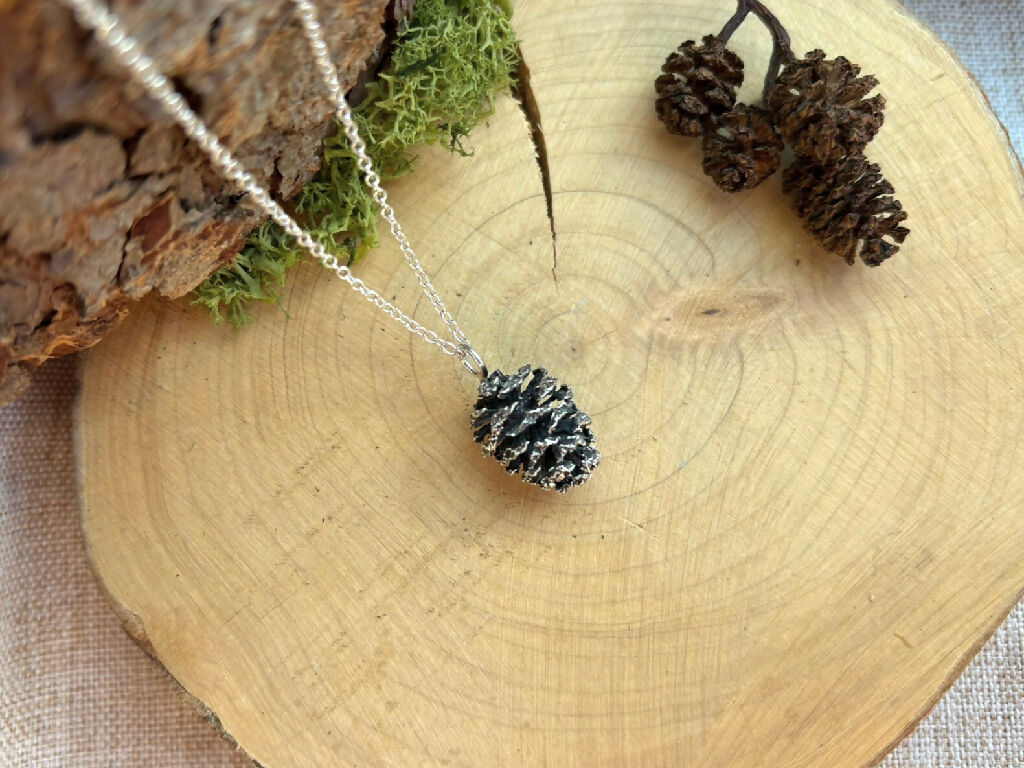 Inspired by woodland treasures, this Silver Pinecone Necklace is handcrafted in our UK studio from a real miniature alder cone. Each piece is cast in sterling silver using intricate hand-crafting techniques, meaning every necklace is unique and one-of-a-kind.