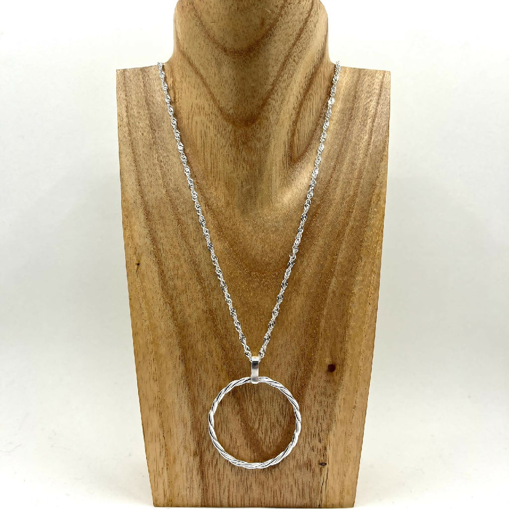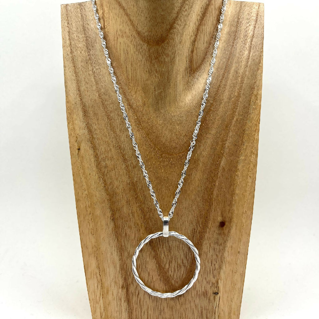 Sterling Silver Twisted Hoop Necklace on 26" Silver Chain