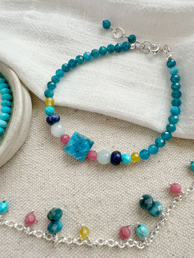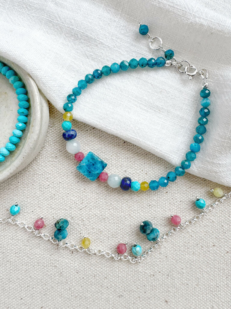 Summer Token Bracelet with apatite, pink jade and yellow opal