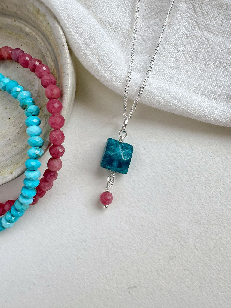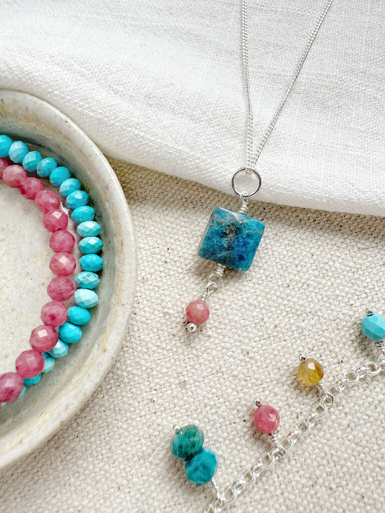 Summer Token Pendant Necklace with Apatite and Rhodochrosite