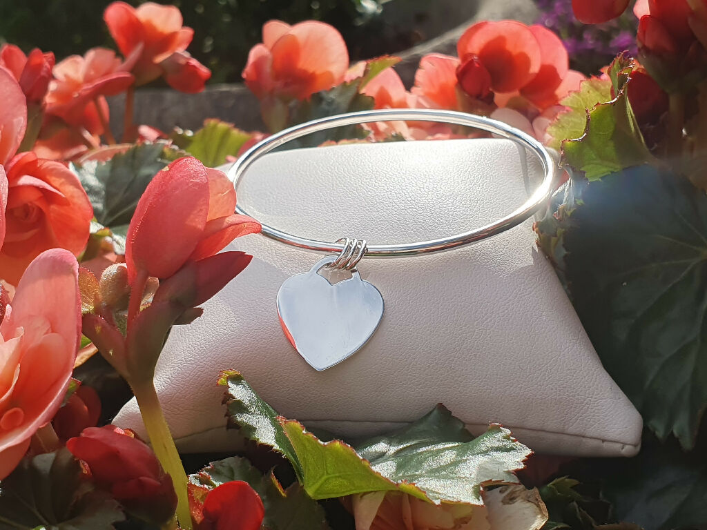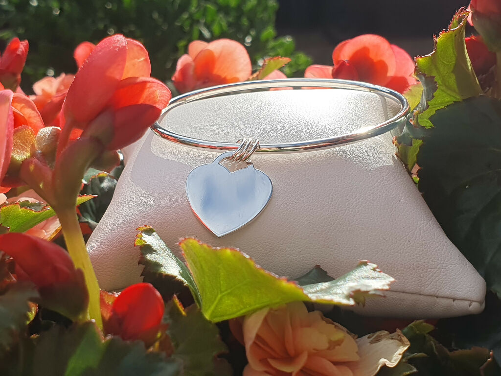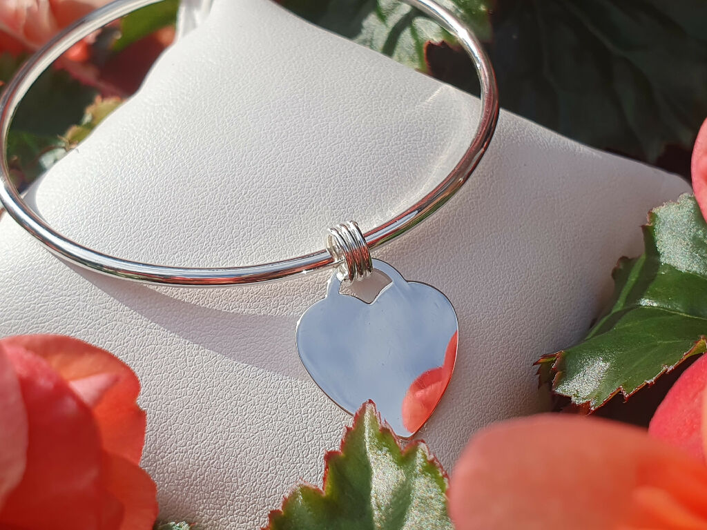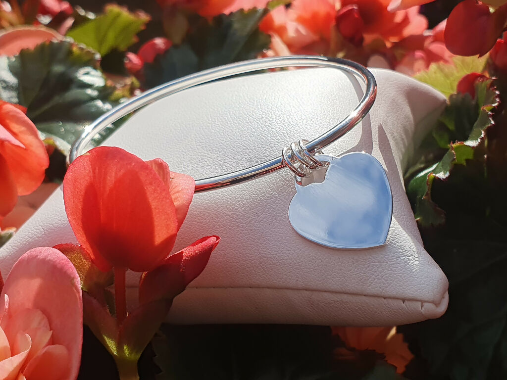 Each bangle is shaped and finished by hand, giving it a unique artisanal character. The sleek silver band elegantly frames the polished heart charm that catches the light with every movement, creating a design that’s versatile enough for everyday wear yet special enough to celebrate life’s meaningful moments.