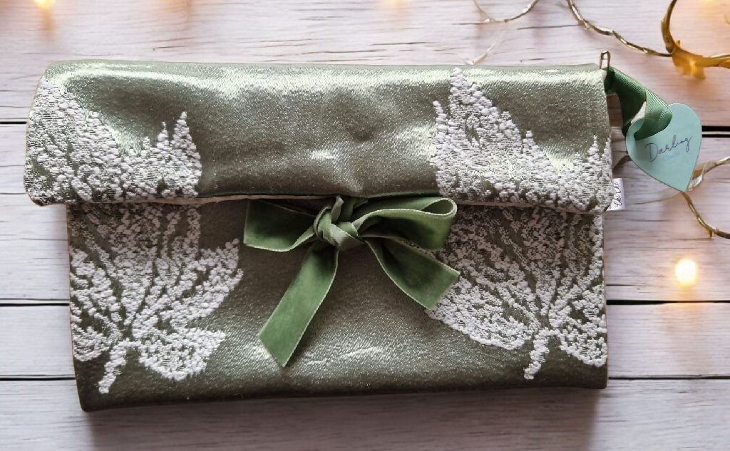 Satin embroidered beauty bag