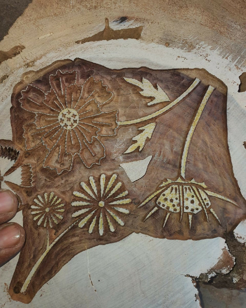 The wood blocks in the kit are designed by us in the UK and hand-carved by artisans in Jaipur, India.
