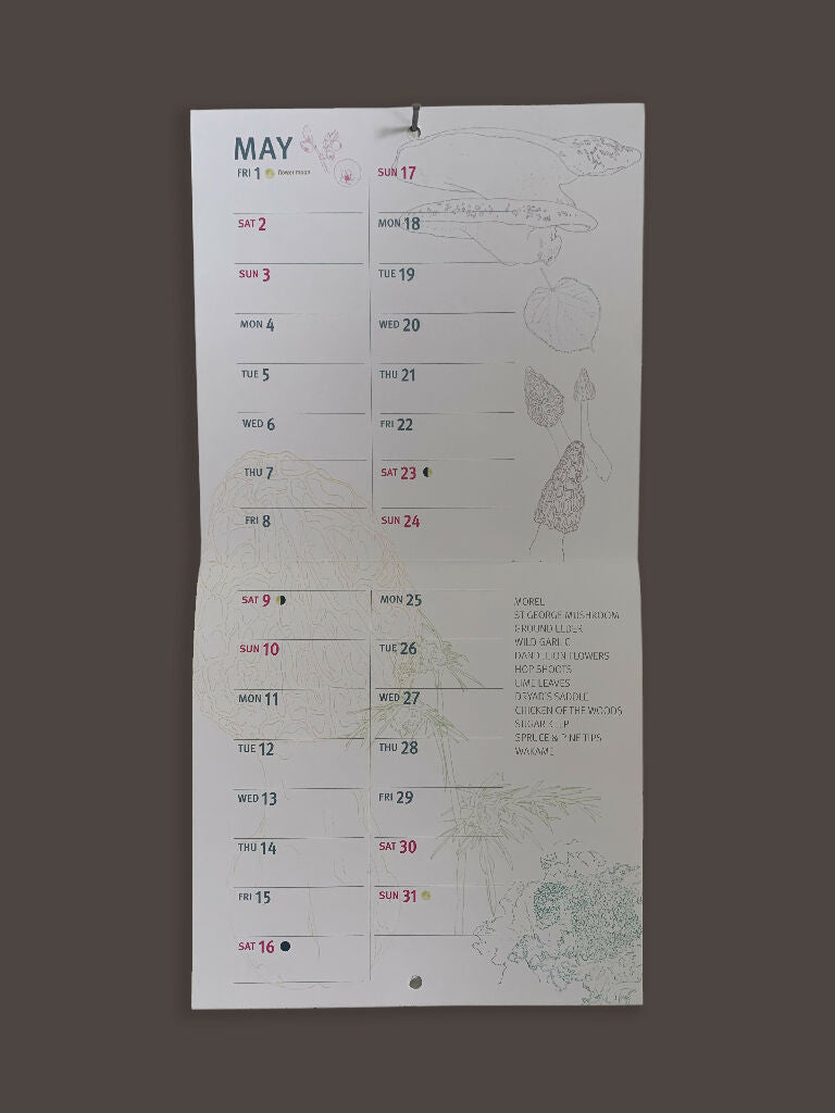 Each month showcases hand-drawn illustrations from our foraging walks in Scotland. It blends botanical detail with natural charm. Whether you're a seasoned forager or simply love slow, seasonal living, this calendar brings the outdoors in.