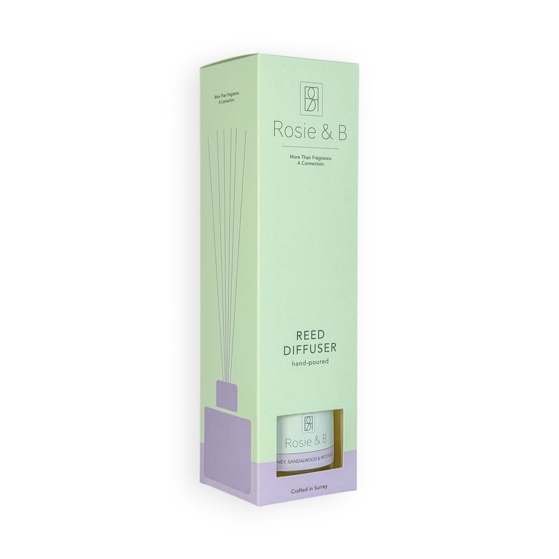 A hand-poured reed diffuser paired with tall fibre reeds for a beautiful, long-lasting fragrance. Available with our presentation box, or without for a simpler finish. Honey, Sa...