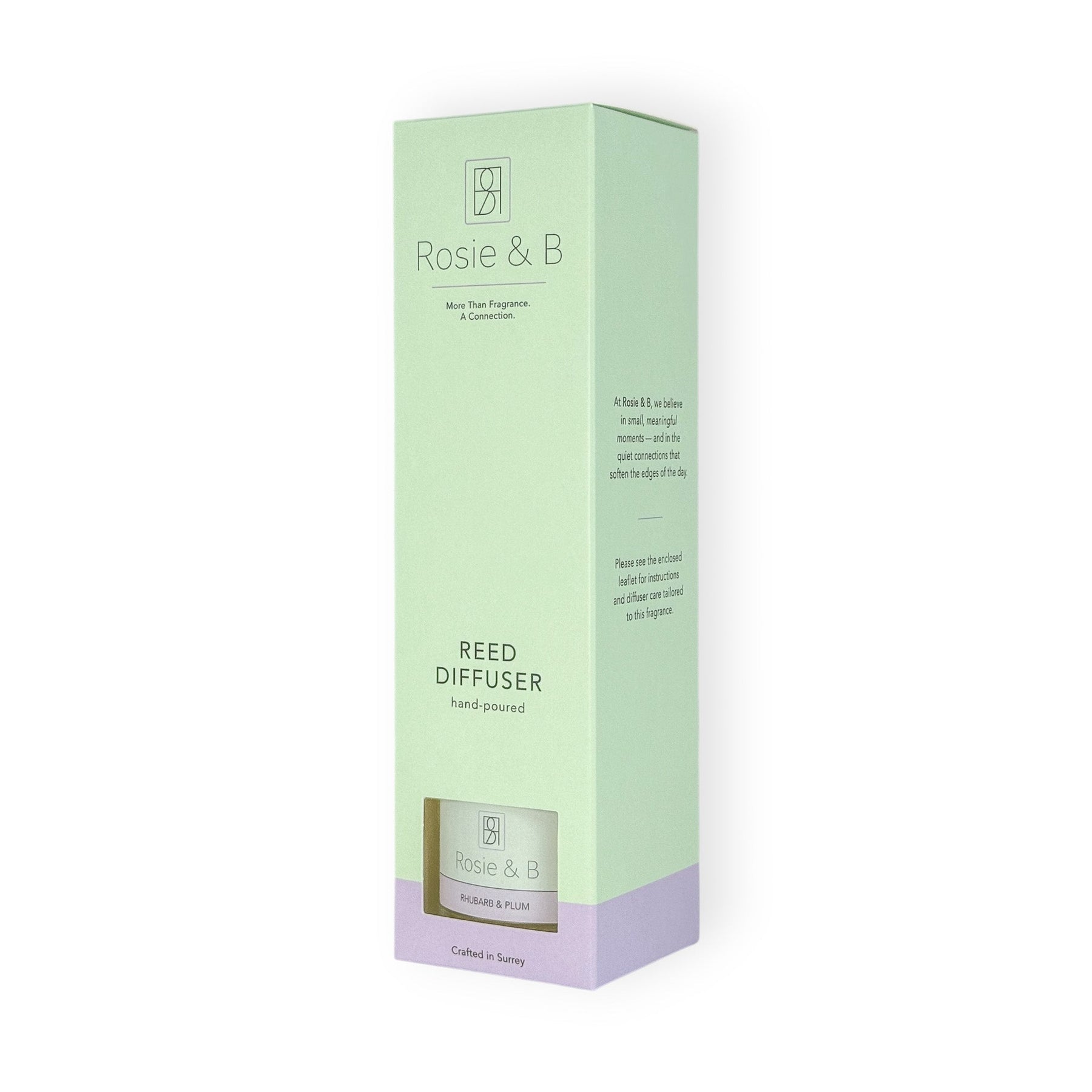 A hand-poured reed diffuser paired with tall fibre reeds for a beautiful, long-lasting fragrance. Available with our presentation box, or without for a simpler finish. Rhubarb &...