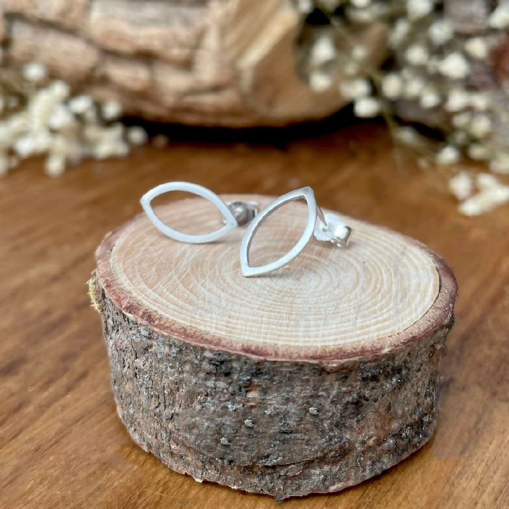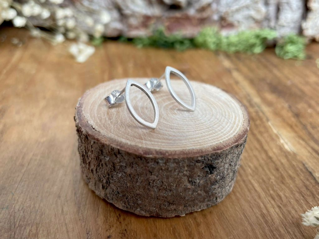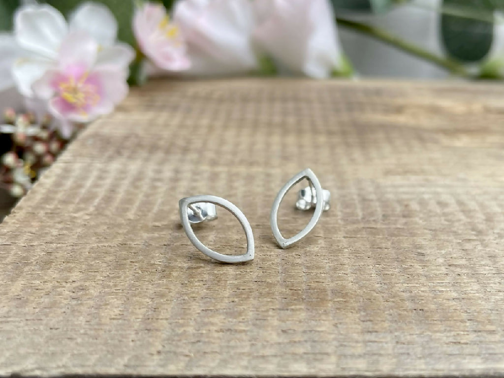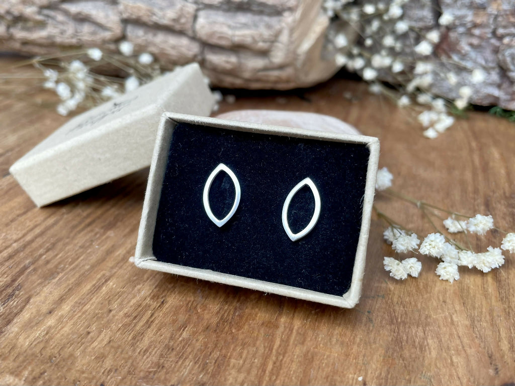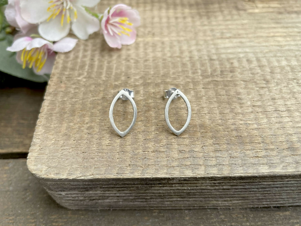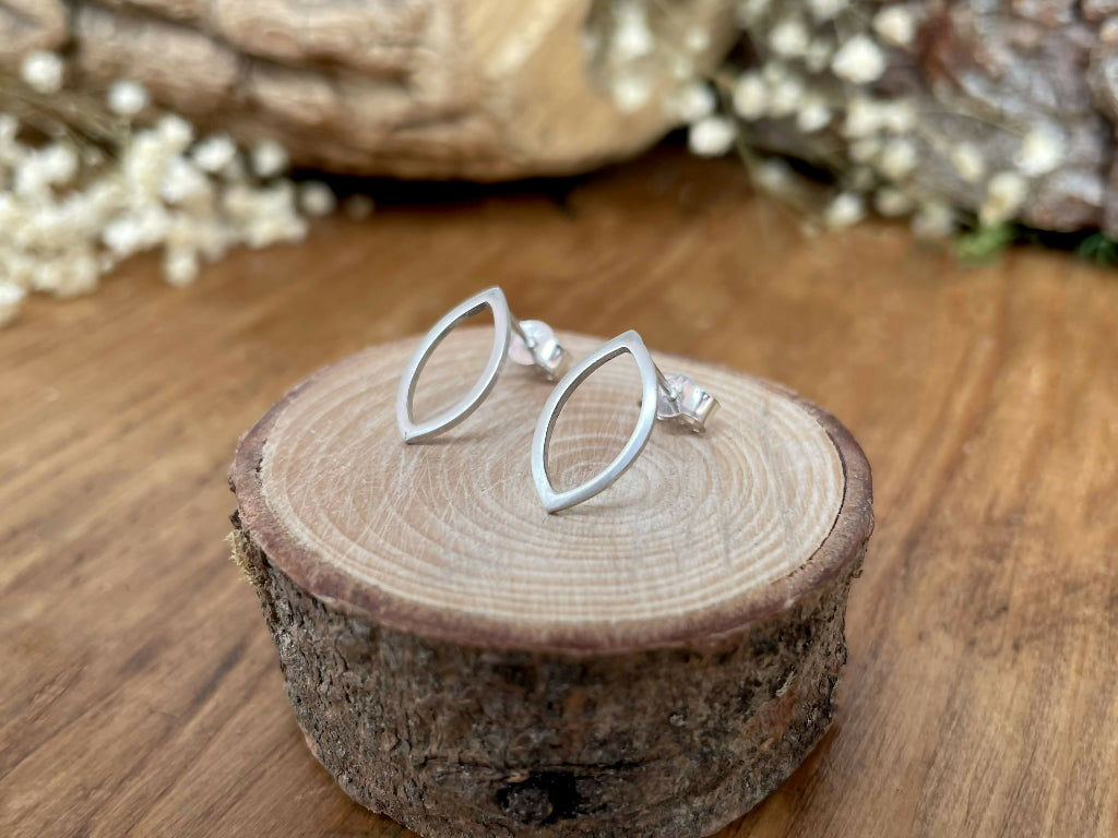 Elegant and contemporary, these sterling silver stud earrings are handcrafted in a sleek navette shape that sits gracefully below the earlobe.