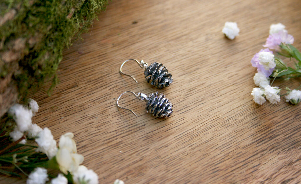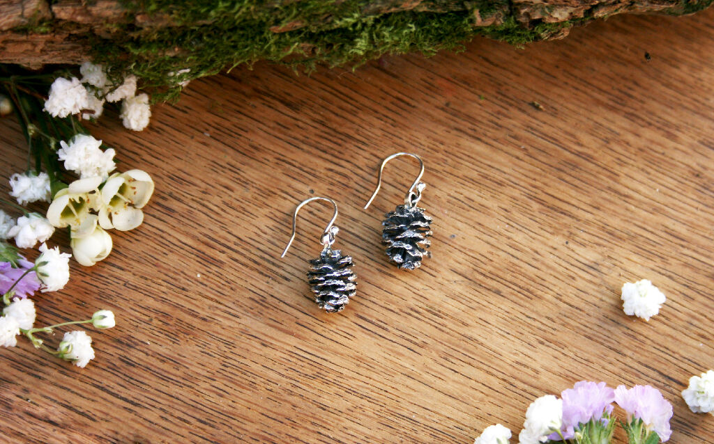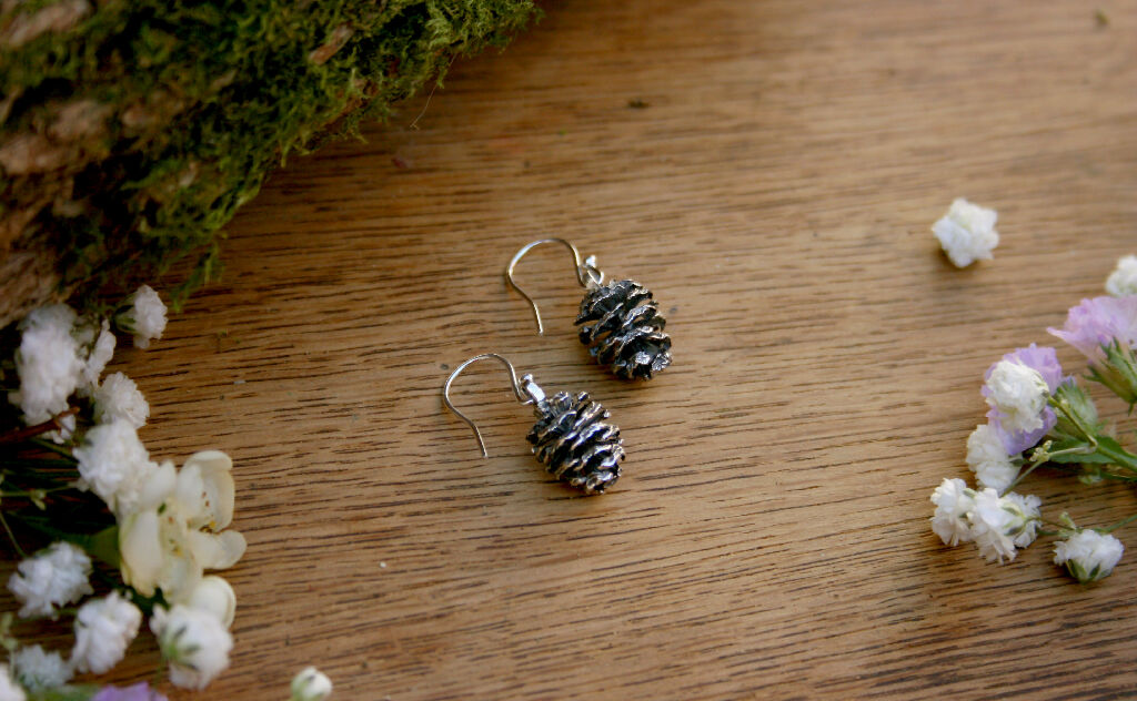 Handcrafted in our UK studio, these Silver Pinecone Earrings are inspired by woodland treasures. Each earring is made from a real miniature alder cone, transformed into a solid ...