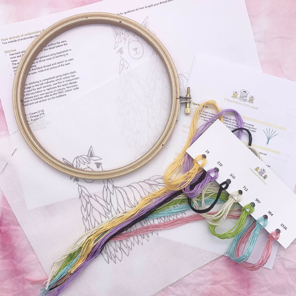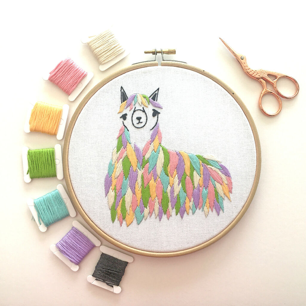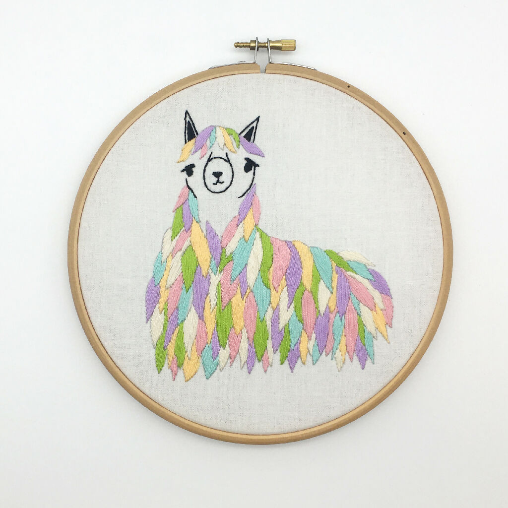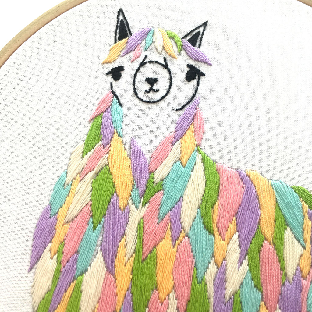 There will definitely be no drama stitching this cute llama embroidery from Cinnamon Stitching. Apart from a small amount of backstitch for the face and ears, all of this colourful embroidery is completed using satin stitch, giving great depth to the colours and creating the lovely shaggy look of this friendly llama.