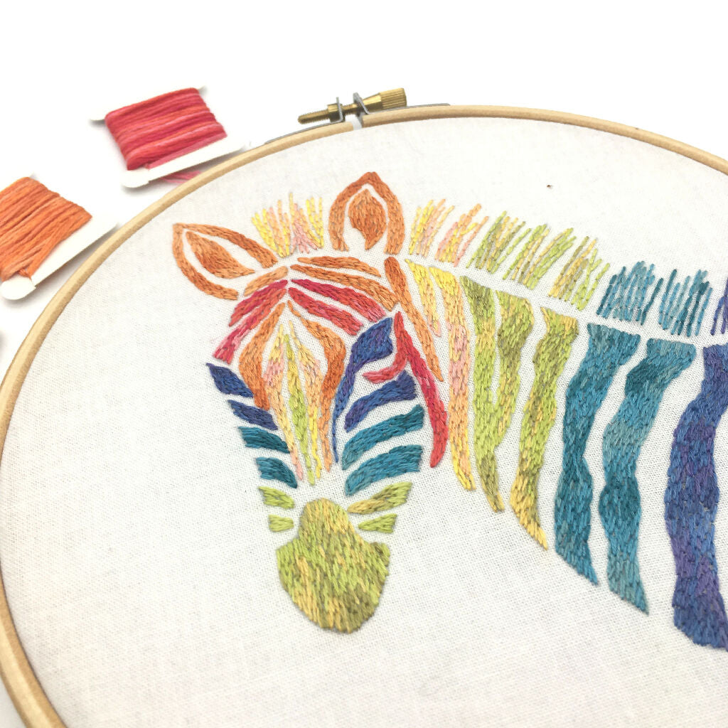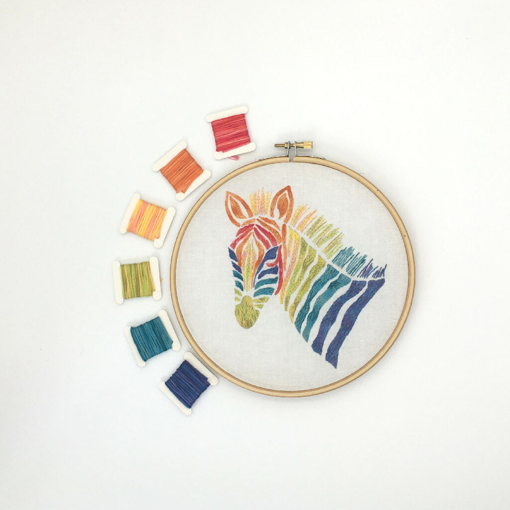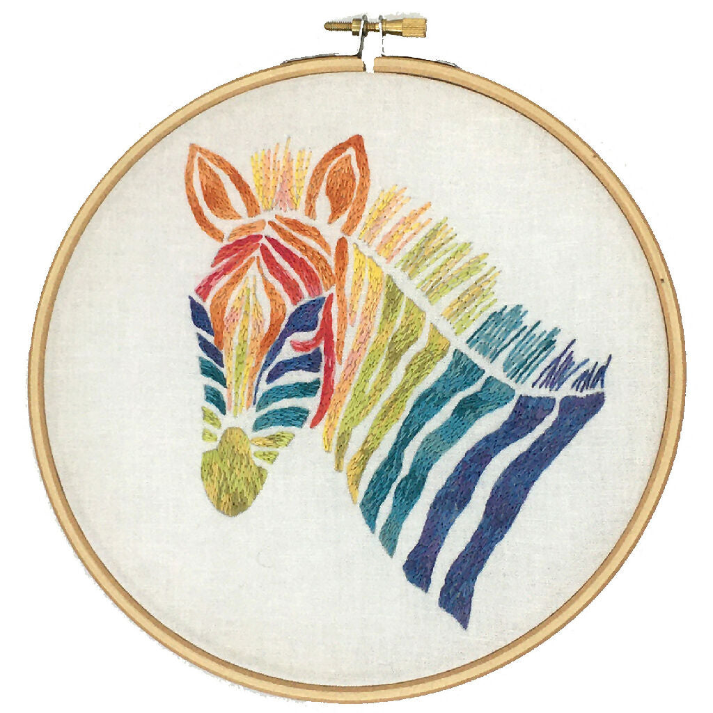 Stitch your own Rainbow Zebra with this embroidery kit from Cinnamon Stitching.