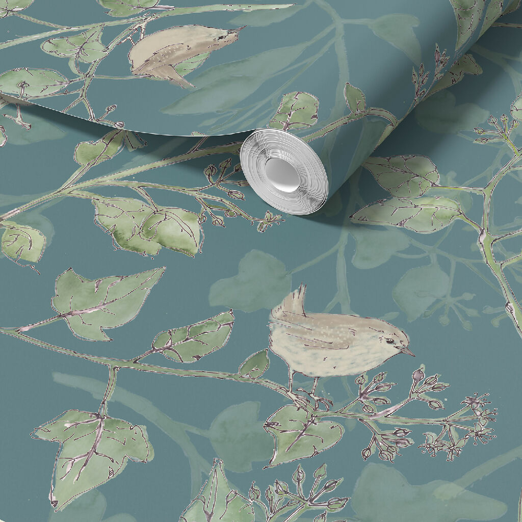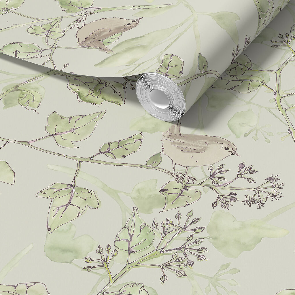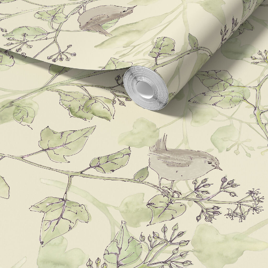 Wrens in the Ivy Sustainable Wallpaper: Four Colours