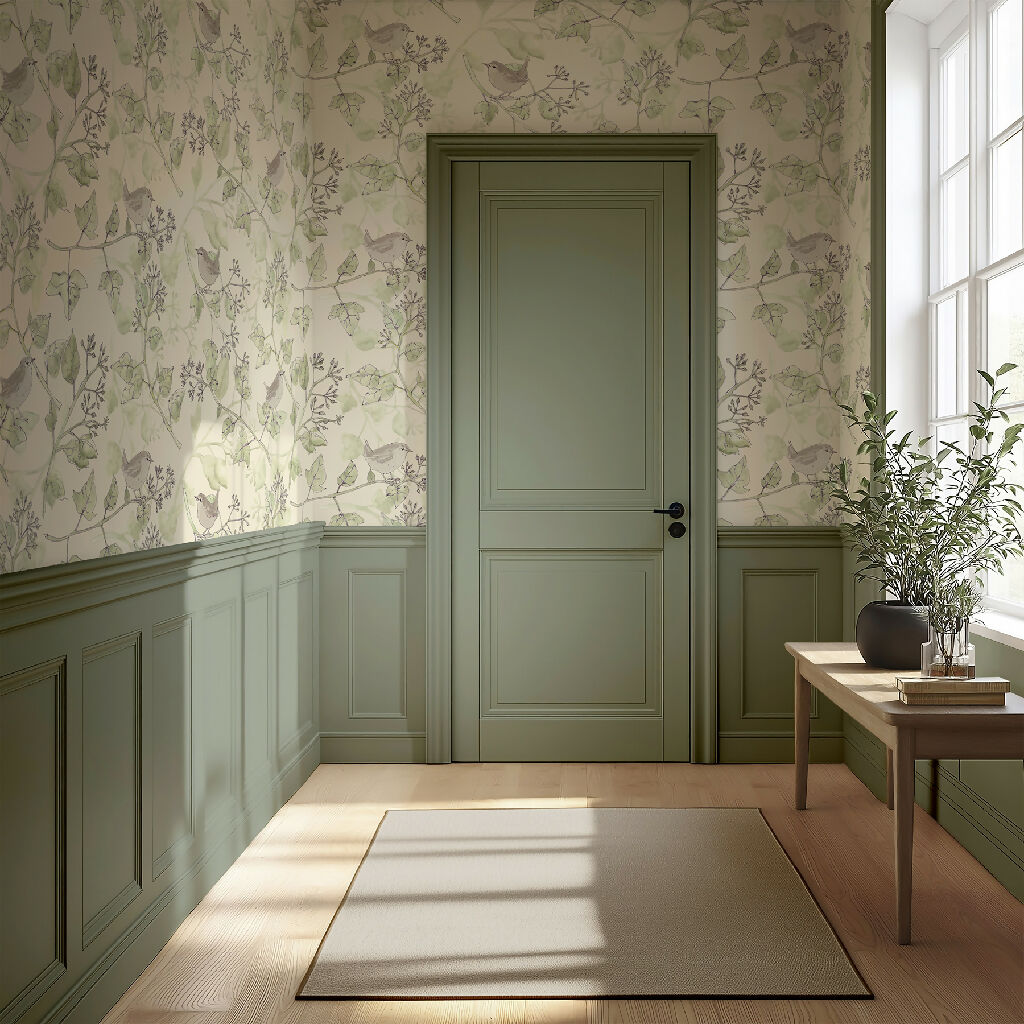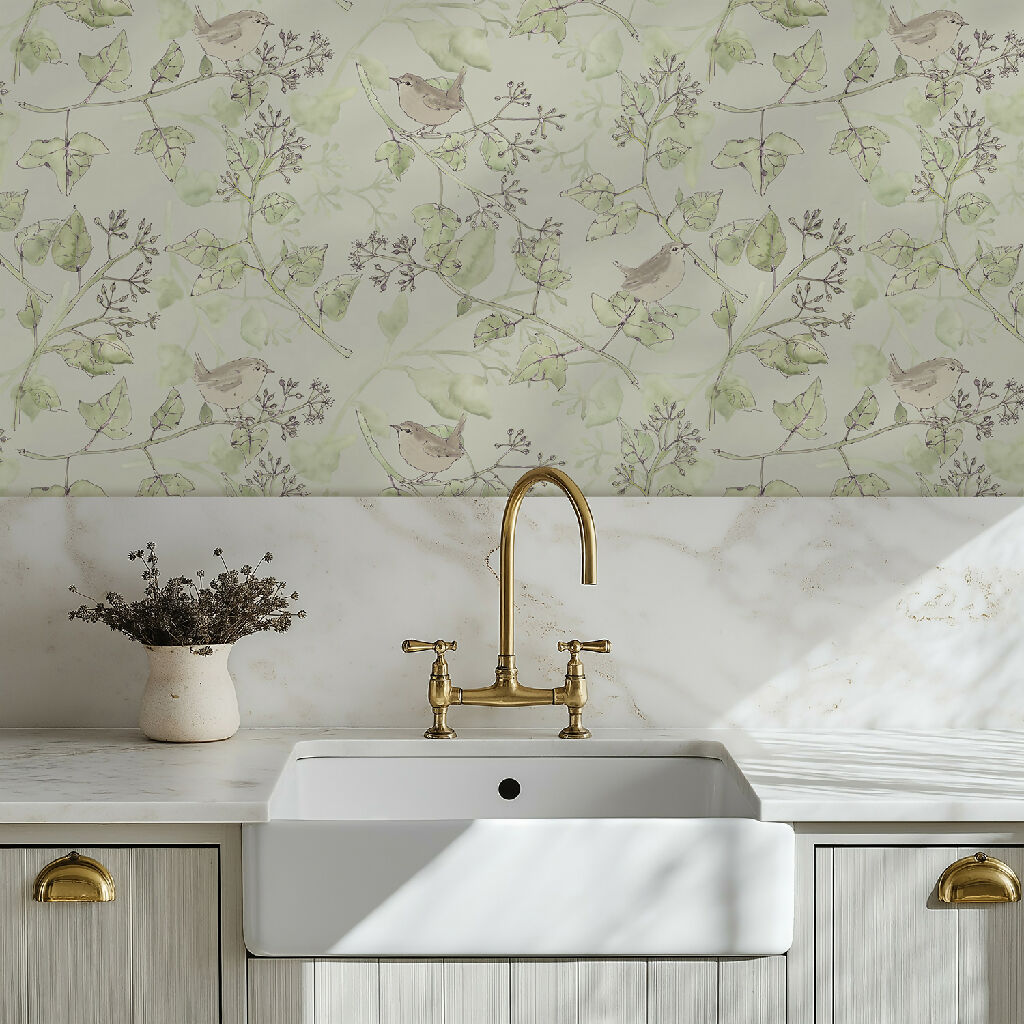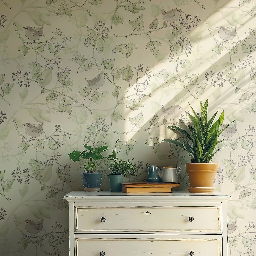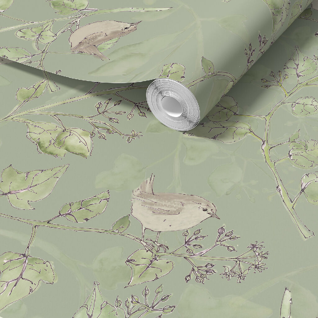 Wrens in the Ivy Sustainable Wallpaper: Four Colours