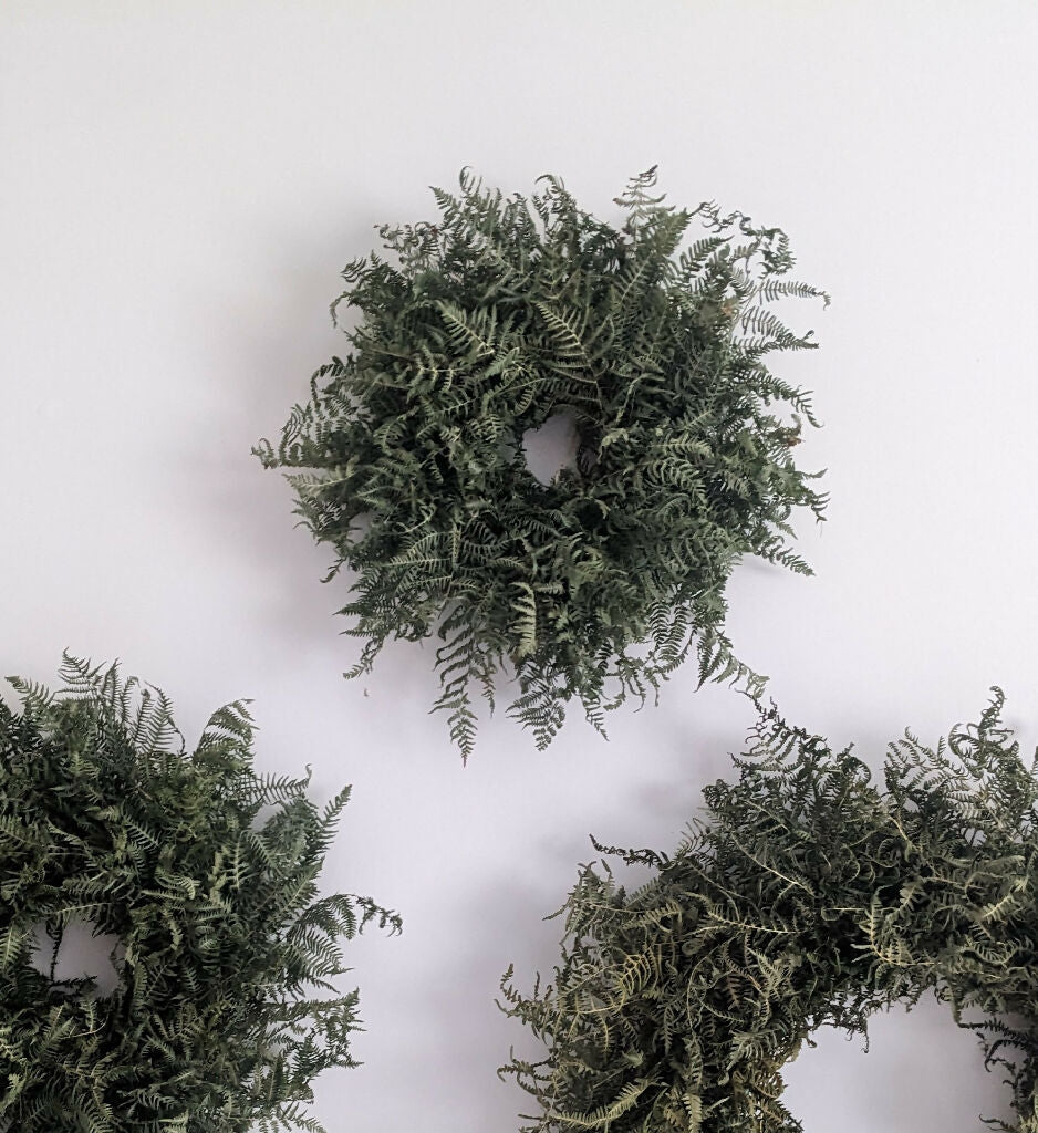 Available in a range of sizes, each fern wreath looks stunning on its own — or can be used as a versatile base to add your own touch with dried flowers, ribbons, or faux blooms.