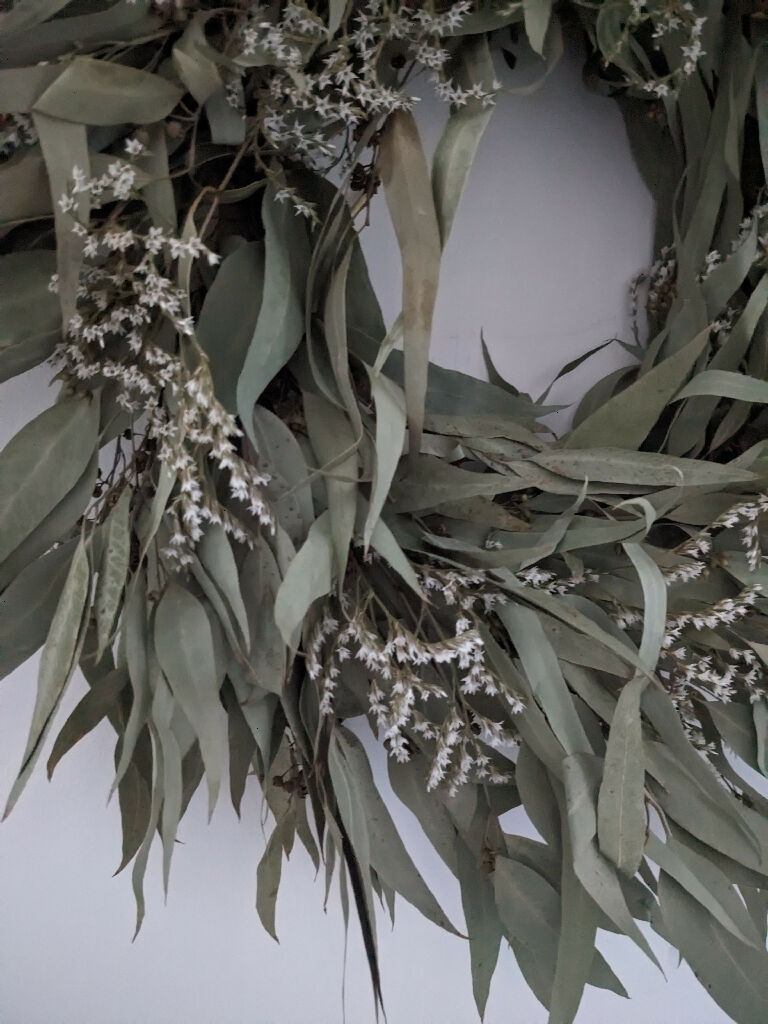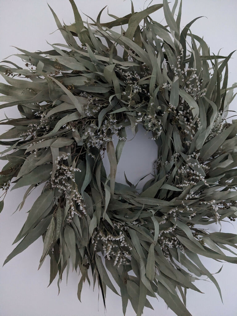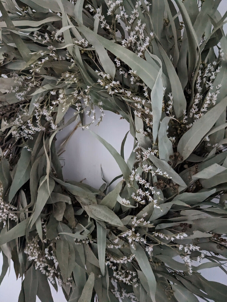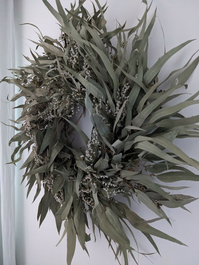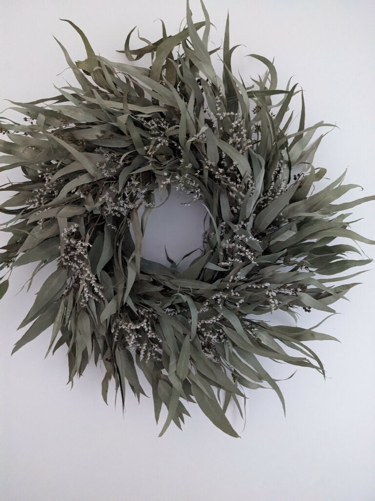 Bring the calm, natural beauty of eucalyptus into your home with this handcrafted dried wreath. Made entirely from natural eucalyptus branches, this piece is free from dyes or preservatives, allowing the gentle tones and textures of the leaves to shine through.
