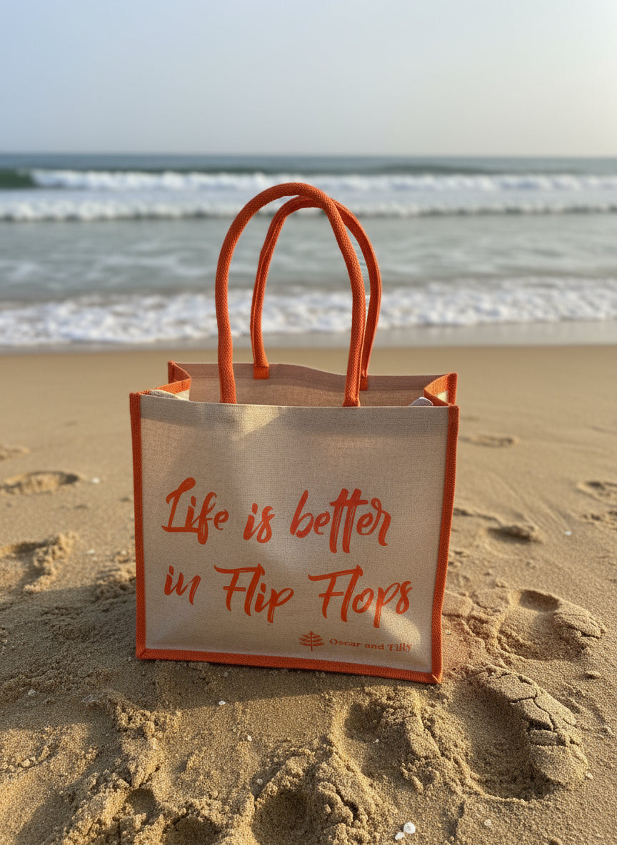 Look the part with our flip flop jute bag - the perfect accessory bag! Perfect for a quick trip to the beach, to hold towels, snacks and drinks, idea for work, or to use as a fitness bag or just to go shopping with! The list is endless. They also make you smile looking at them as so bright and cheerful. Perfect to take on holiday too as go nice and flat to pack to place at the bottom of your suitcase!