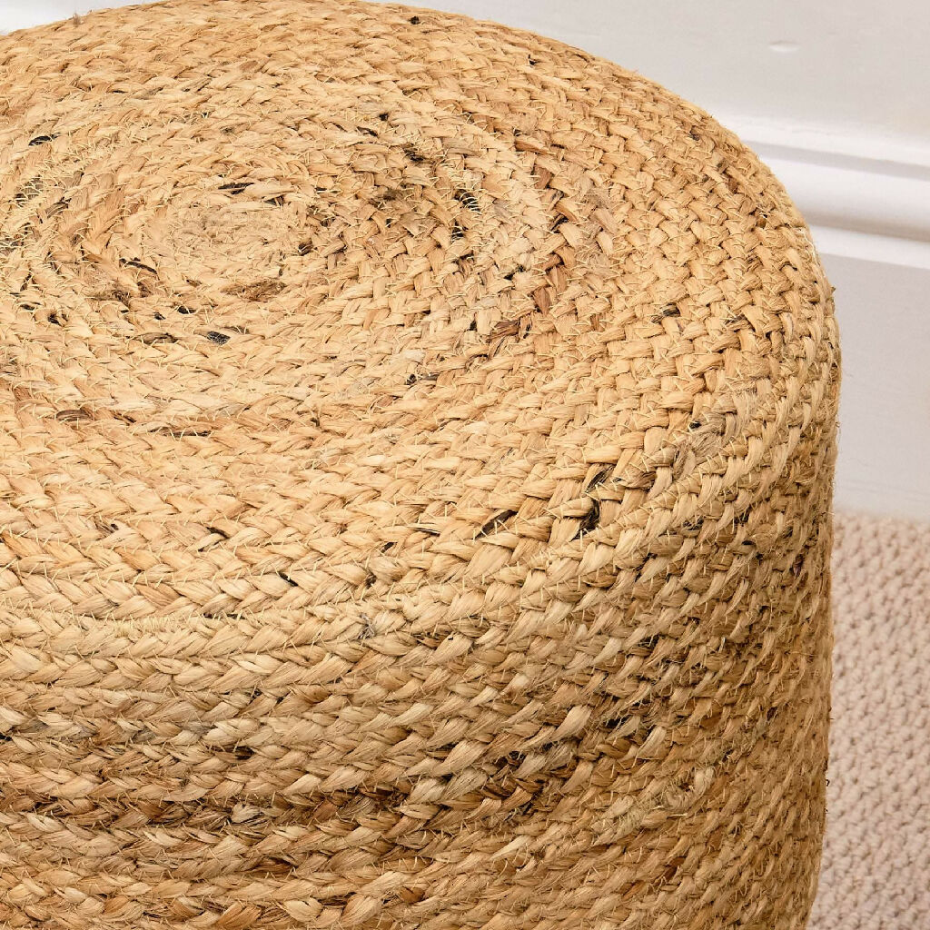 Available in two sizes, this sturdy and light weight footstool features a sustainable jute cover atop recycled foam filling, offering eco-conscious comfort and style for your home.