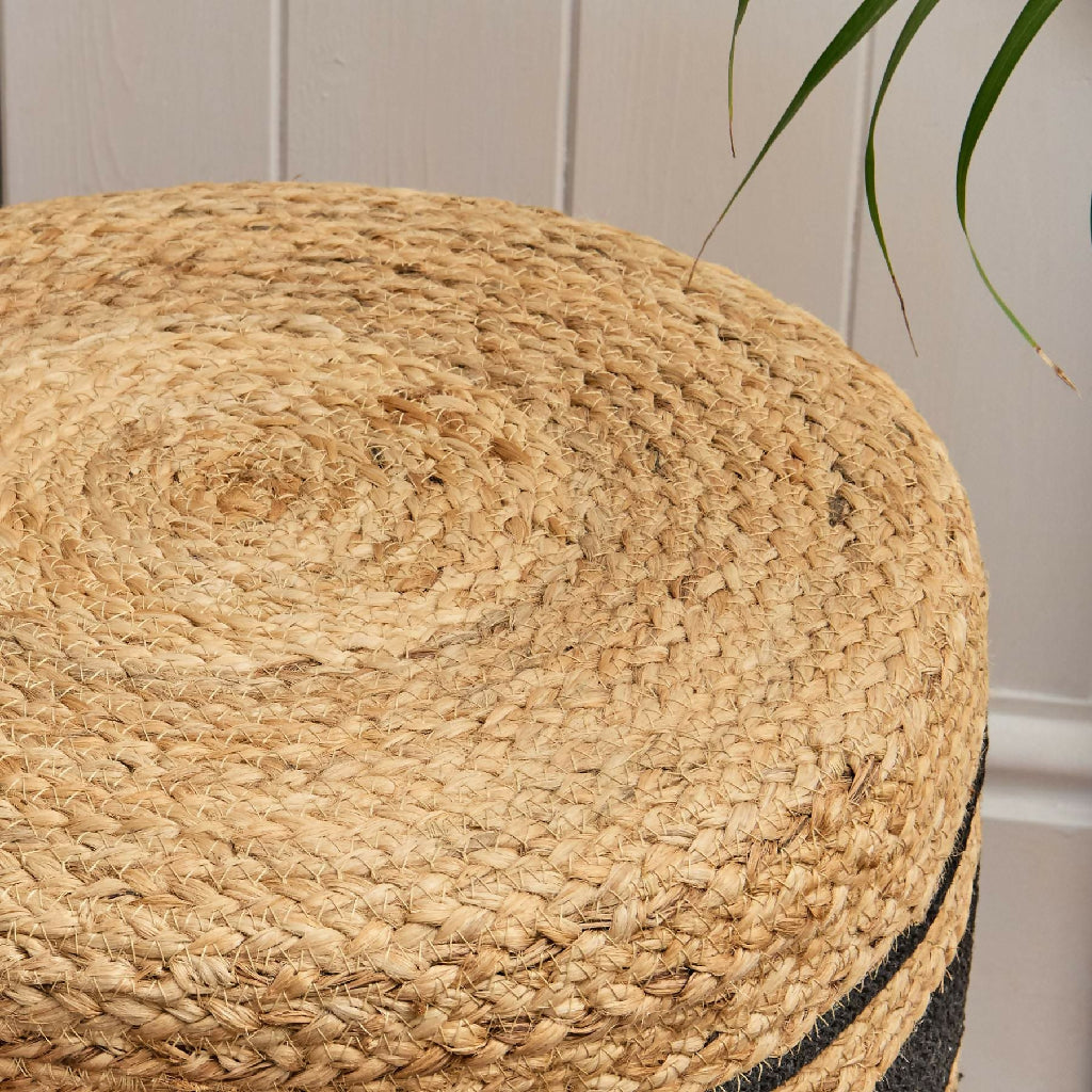 Available in two sizes, this sturdy and light weight footstool features a sustainable jute cover atop recycled foam filling, offering eco-conscious comfort and style for your home.