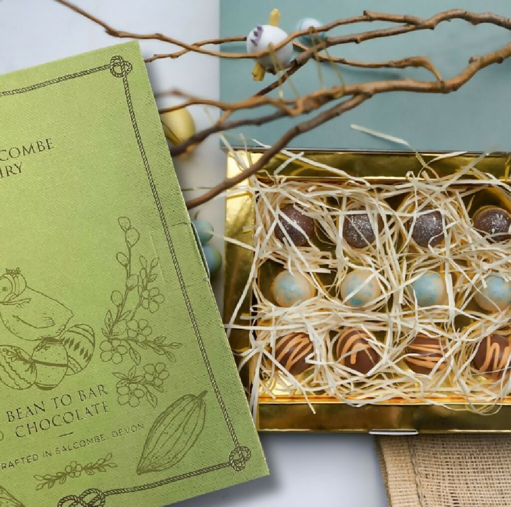 Our award-winning Bean to Bar chocolate is made with cacao nibs from the Peruvian rainforest, melanged with golden caster sugar before conching, tempering, moulding & hand decorating into these Artistsn mini egg truffles.