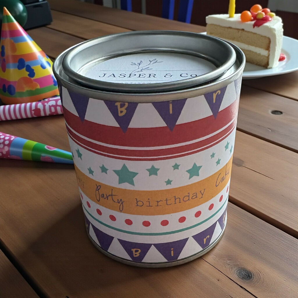 Hand-poured using 100% natural soy wax, this candle offers a clean, long-lasting burn with minimal soot. Housed in a reusable metal tin with a cheerful birthday-inspired design, it’s both practical and gift-ready.