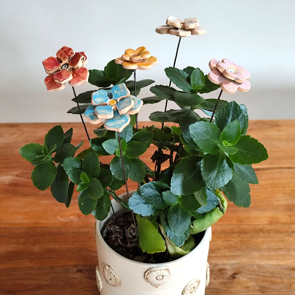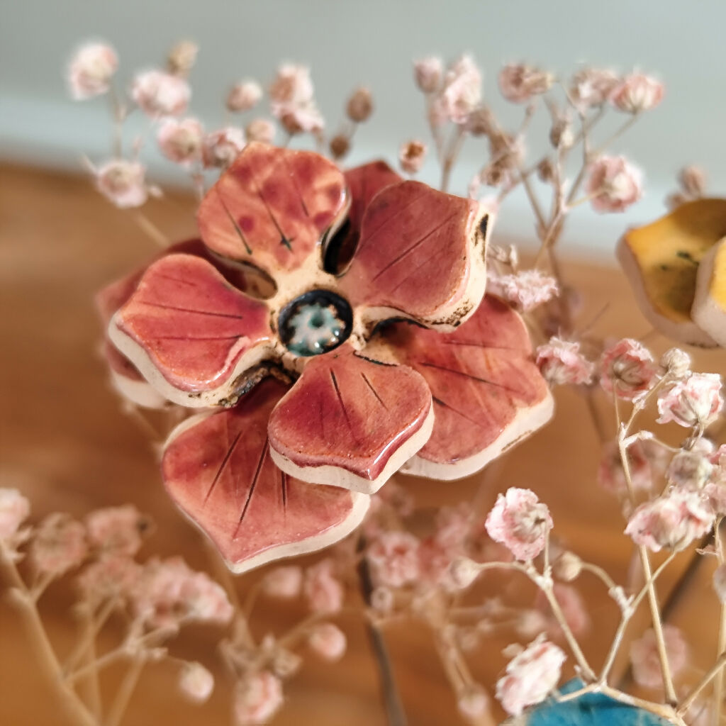 Handcrafted Daisy and Hydrangea ceramic flowers on 25cm long stem in five colour options. The bouquet looks beautiful all year round. Mix the flower stems with dry or fresh flowers and make your own art display.