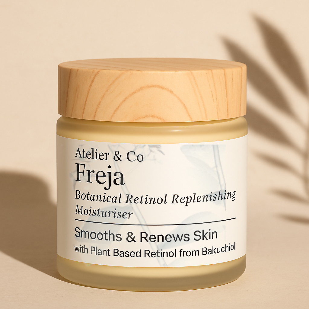 Freja is a gentle, skin-renewing moisturiser infused with plant-based retinol alternatives to support hormonally evolving skin with grace and care.