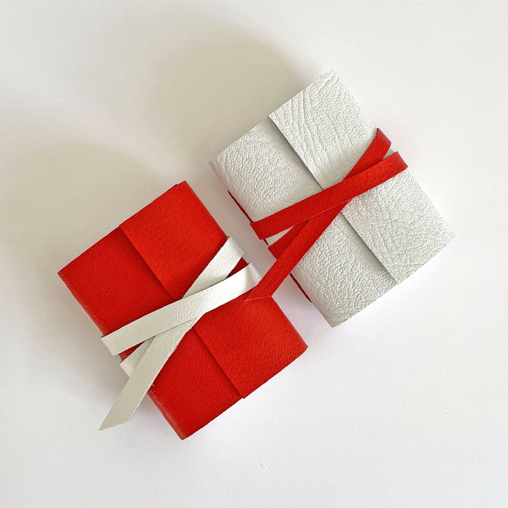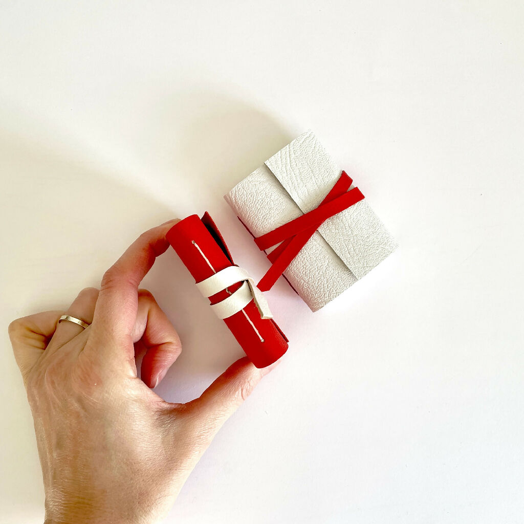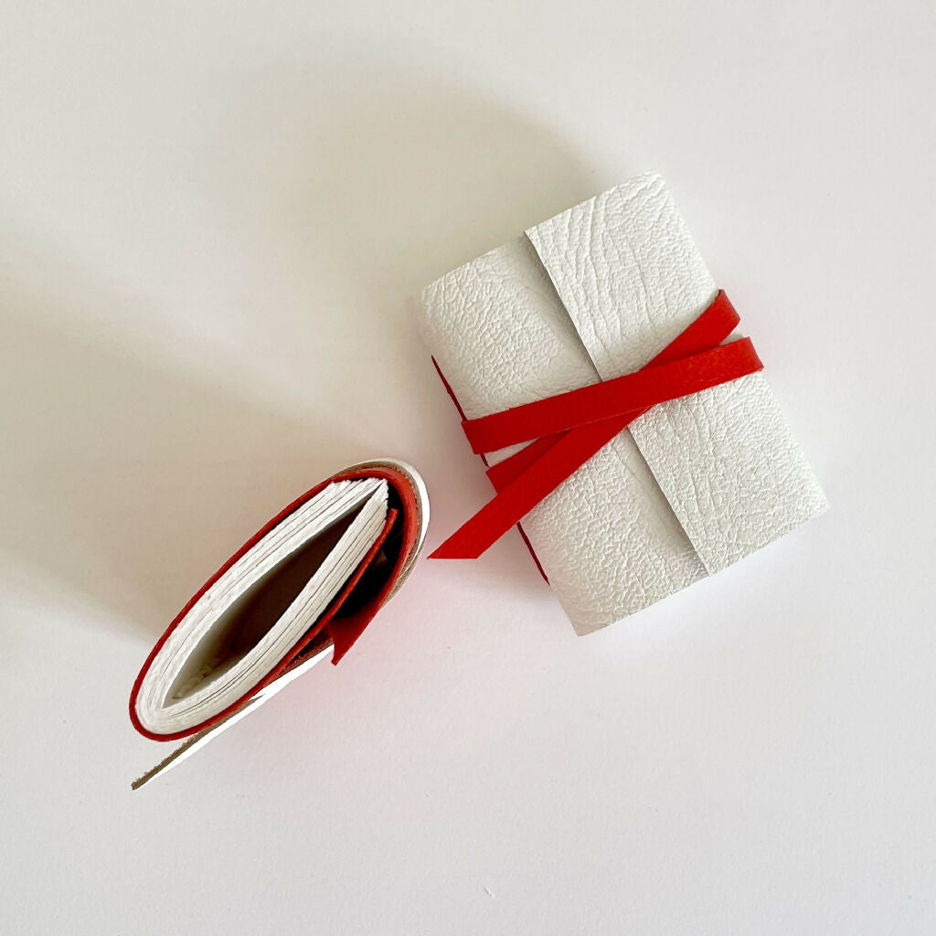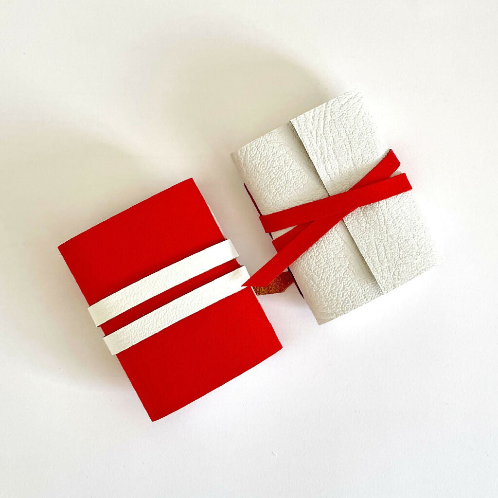 This Mini Notebook bound in festive red and white leather is the perfect Christmas gift for stationery lovers that have everything! Tucks into a pocket, with 100 pages of 115gsm Mohawk Superfine Smooth archival blank paper for writing or drawing.
