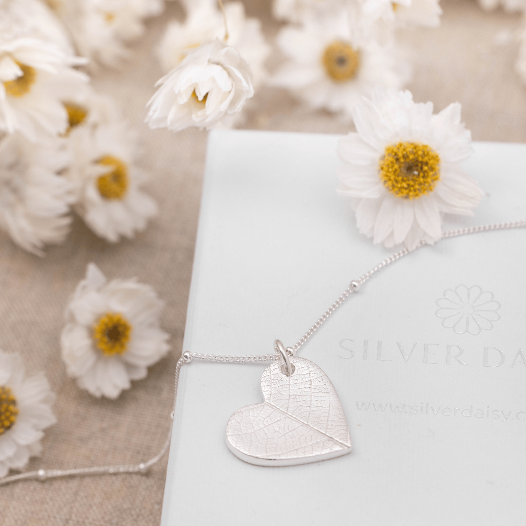 The eye catching heart charm is strung from a high quality sterling silver satellite chain which is secured with a lobster clasp and my signature daisy tag.